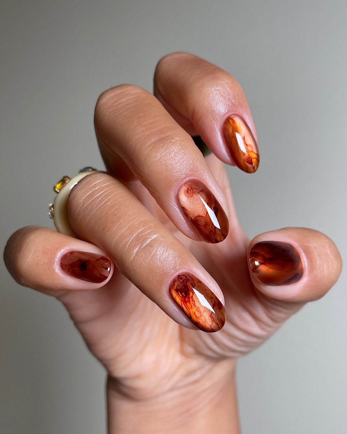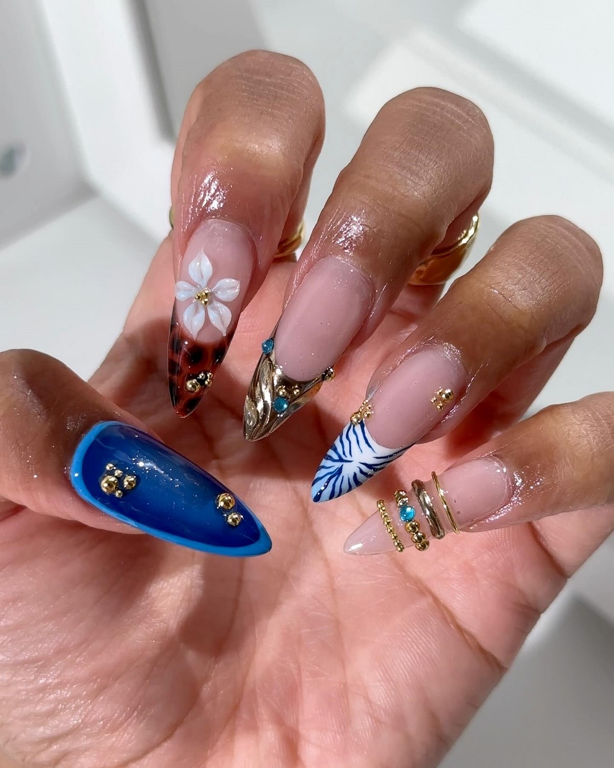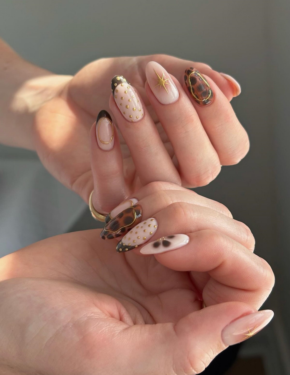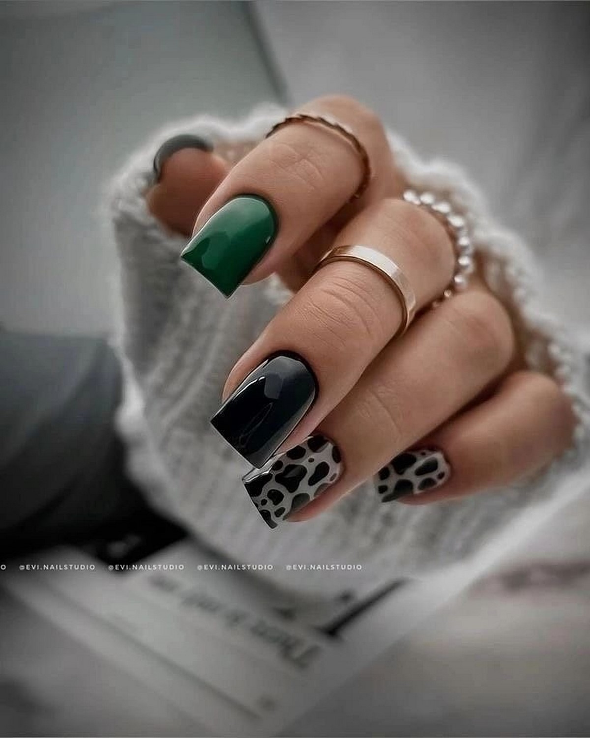 Асиметричний підхід, коли дизайн на лівій руці відрізняється від правої, але доповнює загальну концепцію, стає трендом сезону. Популярне поєднання протилежностей: матових і глянцевих текстур, темних і світлих відтінків, складного і простого декору. Такий манікюр дозволяє проявити креативність і створити дійсно індивідуальний образ, що відображає багатогранність особистості.
