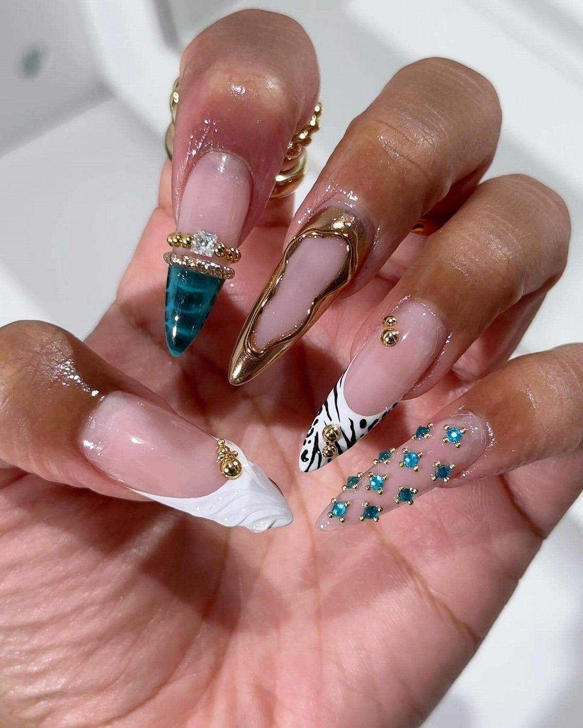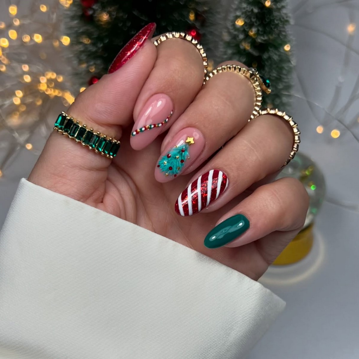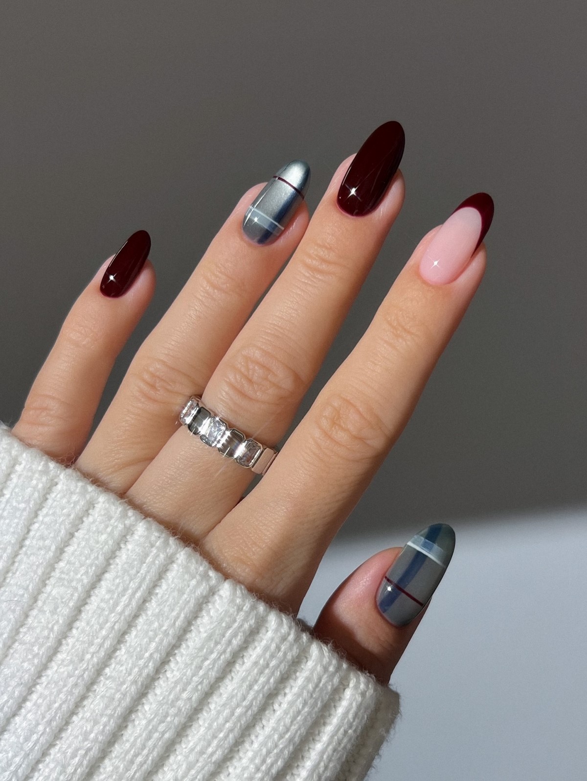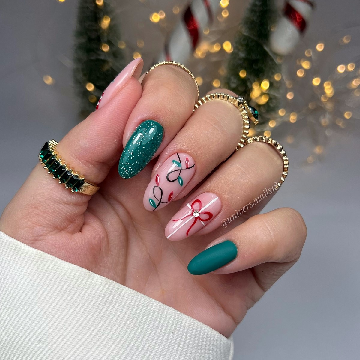 Концепція Mix&Match досягає піку популярності в грудні 2025 року, дозволяючи експериментувати з різними дизайнами на кожному пальці. Головне правило – дотримання єдиної колірної гами або стилістики при різноманітності технік. Можна поєднувати однотонне покриття з френчем, «котячим оком», стразами і мінімалізмом, створюючи унікальну композицію з п’яти різних дизайнів.