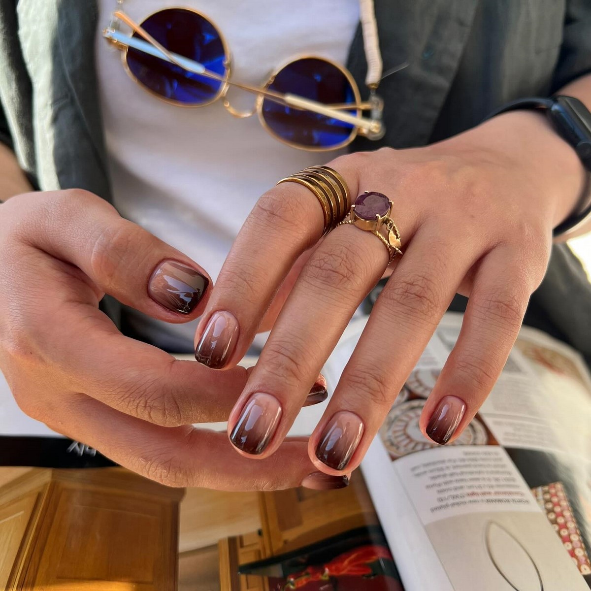 Градієнтний манікюр у грудні 2025 року трансформується в справжнє світлове шоу завдяки використанню шиммерних і голографічних пігментів. Техніка омбре переходить від насичених зимових відтінків до прозорих кінчиків або, навпаки, створює ефект сяйва від основи нігтя. Особливо актуальні градієнти в холодній гамі: від глибокого синього до крижаного блакитного, від сливового до рожевого кварцу.