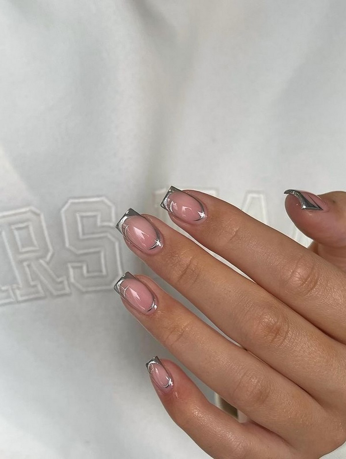 Такий френч виглядає свіжо, сучасно і святково. Він підійде тим, хто любить класику, але хоче надати їй легкий футуристичний акцент. Особливо стильно «рідкий метал» виглядає в поєднанні з мінімалістичними прикрасами і блискучими нарядами.