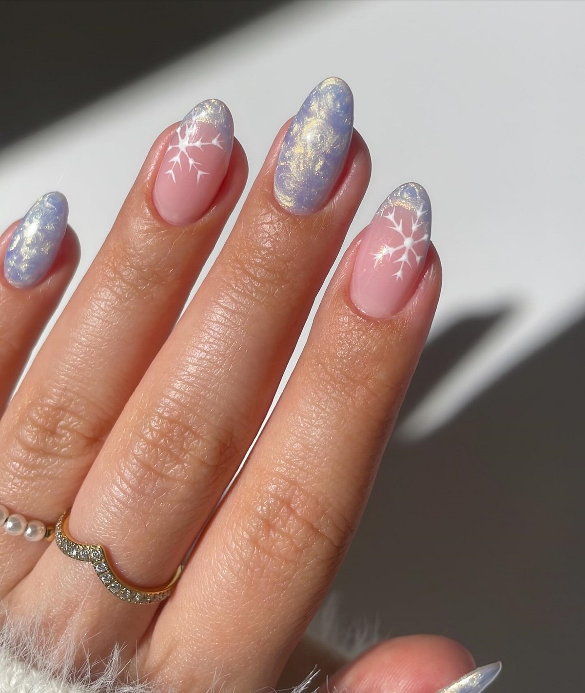 Порада: додай на один ніготь легкий акцент — мініатюрну сніжинку або краплю глітера для додаткового новорічного настрою.