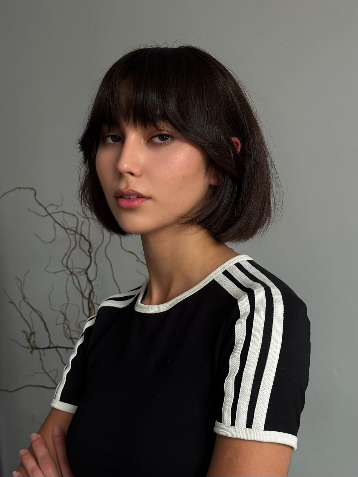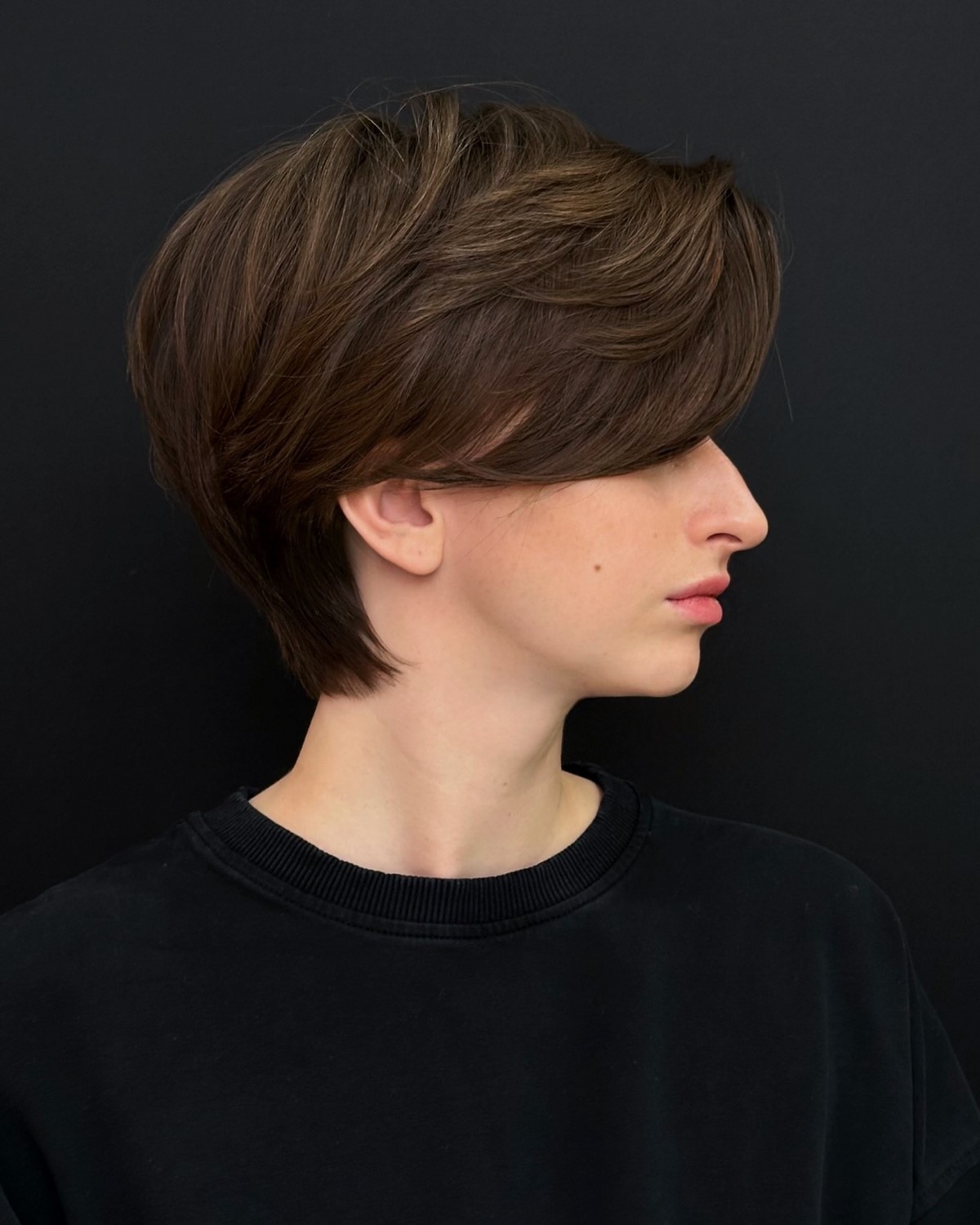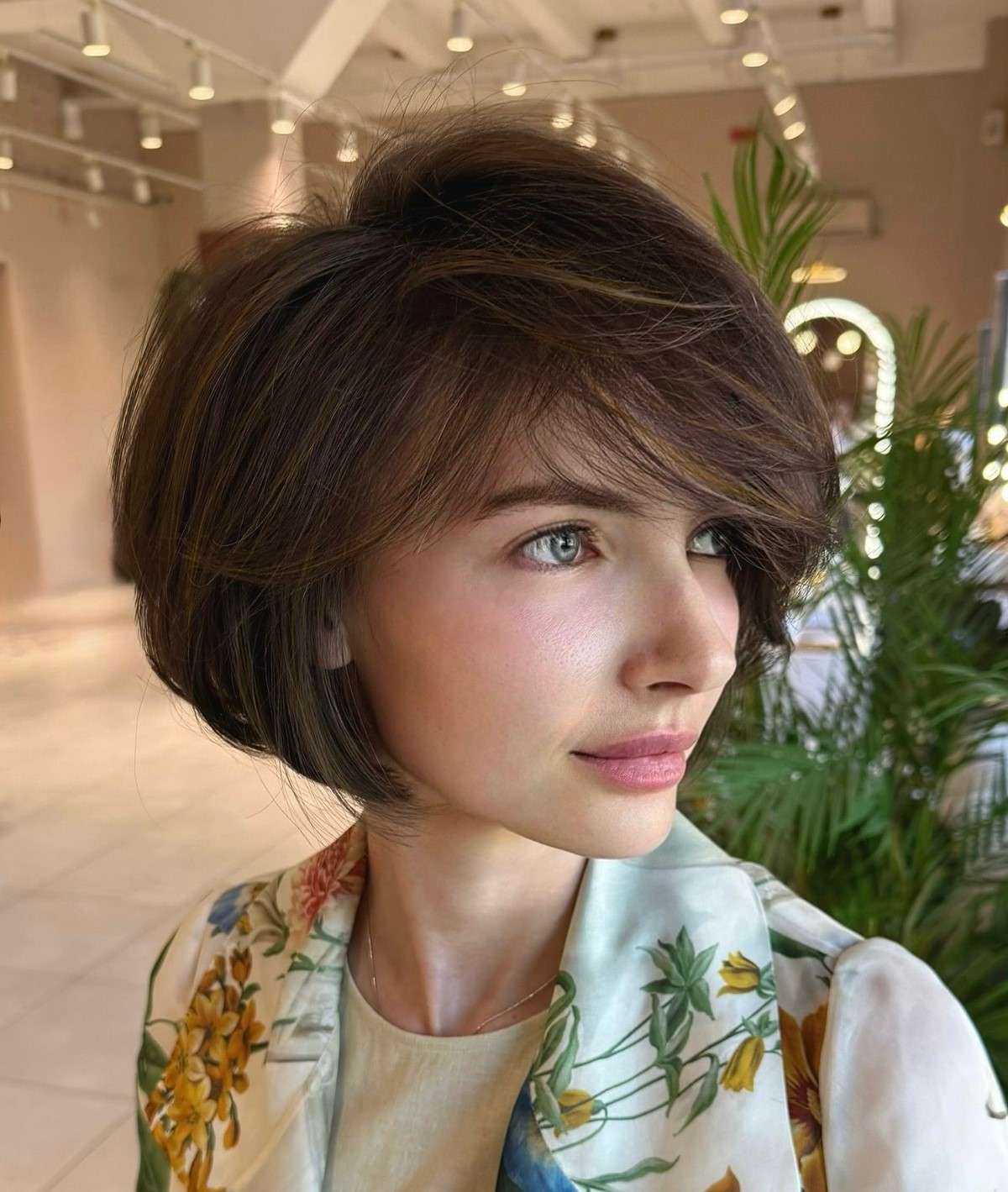 Чубчик в коротких стрижках 2025 року відіграє ключову роль у створенні індивідуального стилю. Прямий густий чубчик в поєднанні з короткою стрижкою створює графічний і сучасний образ, підкреслюючи виразність очей. Коса подовжена чубчик додає м’якості і жіночності, ідеально поєднуючись з різними формами коротких стрижок.