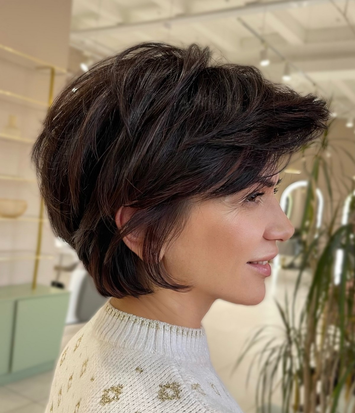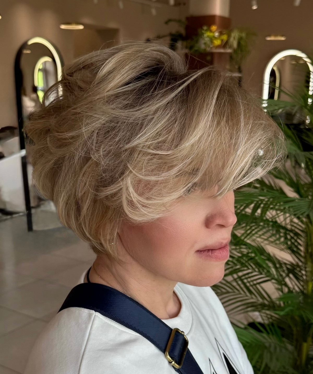 Також затребувана техніка «легкої недбалості», коли укладка виглядає природною, ніби зробленою за пару хвилин. Це дозволяє носити короткі стрижки без щоденних довгих укладок. Ще один секрет — акцент на чубку або асиметрії, які надають образу індивідуальність і підкреслюють риси обличчя.