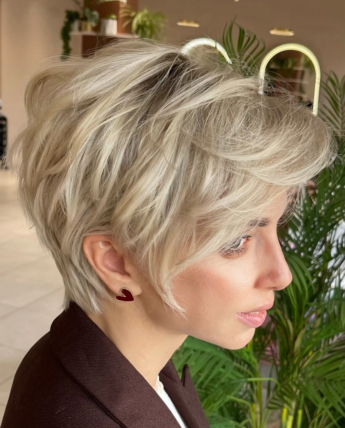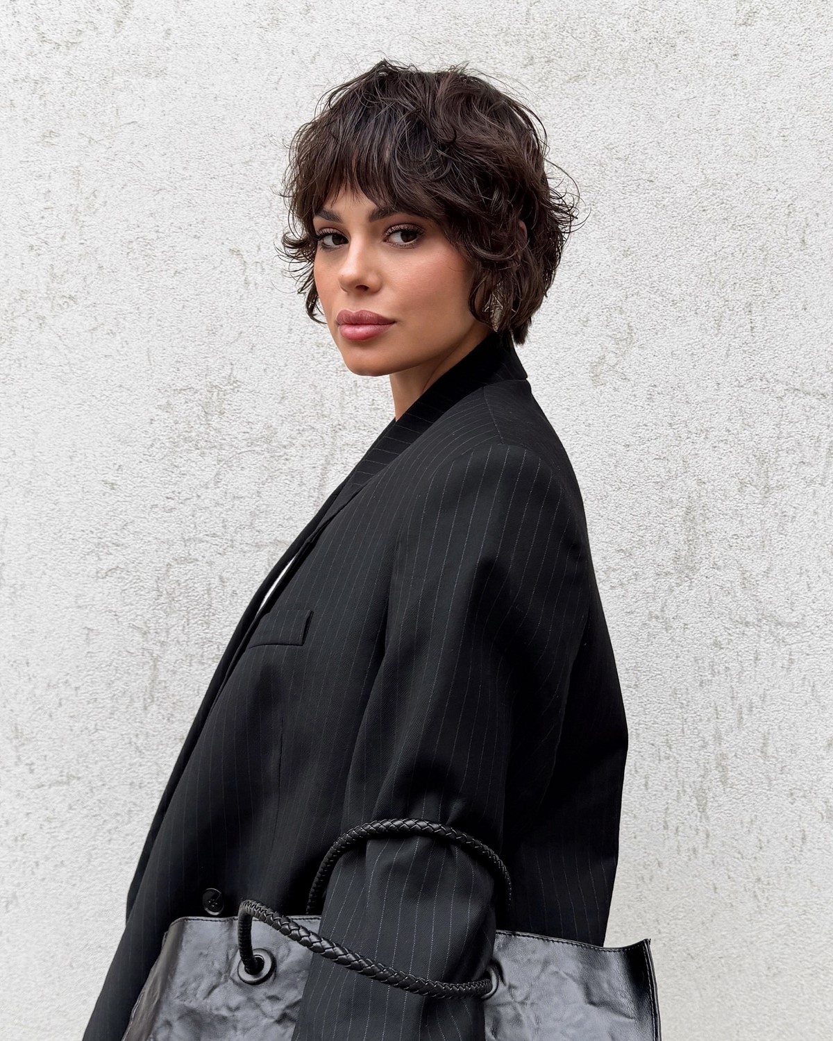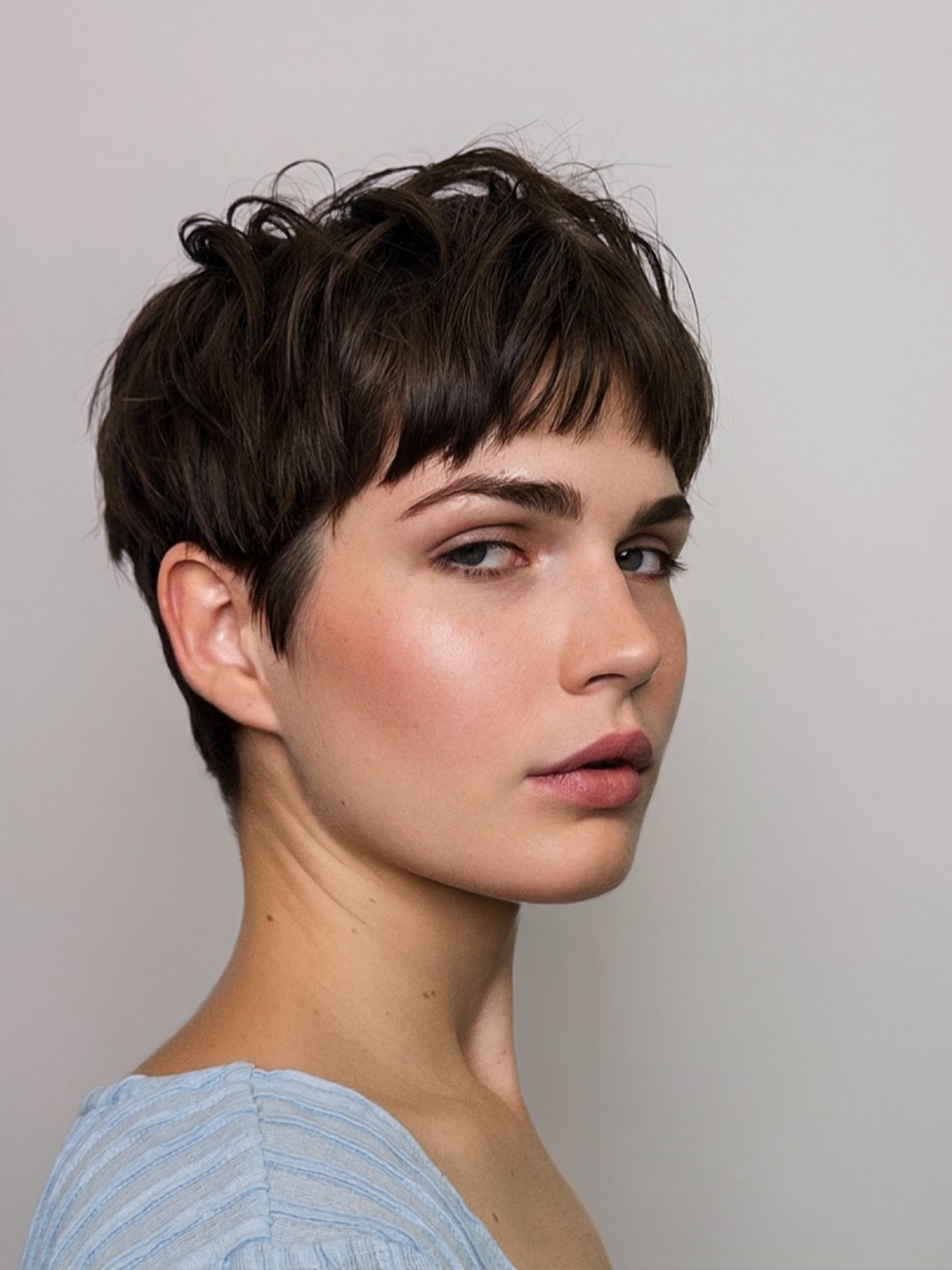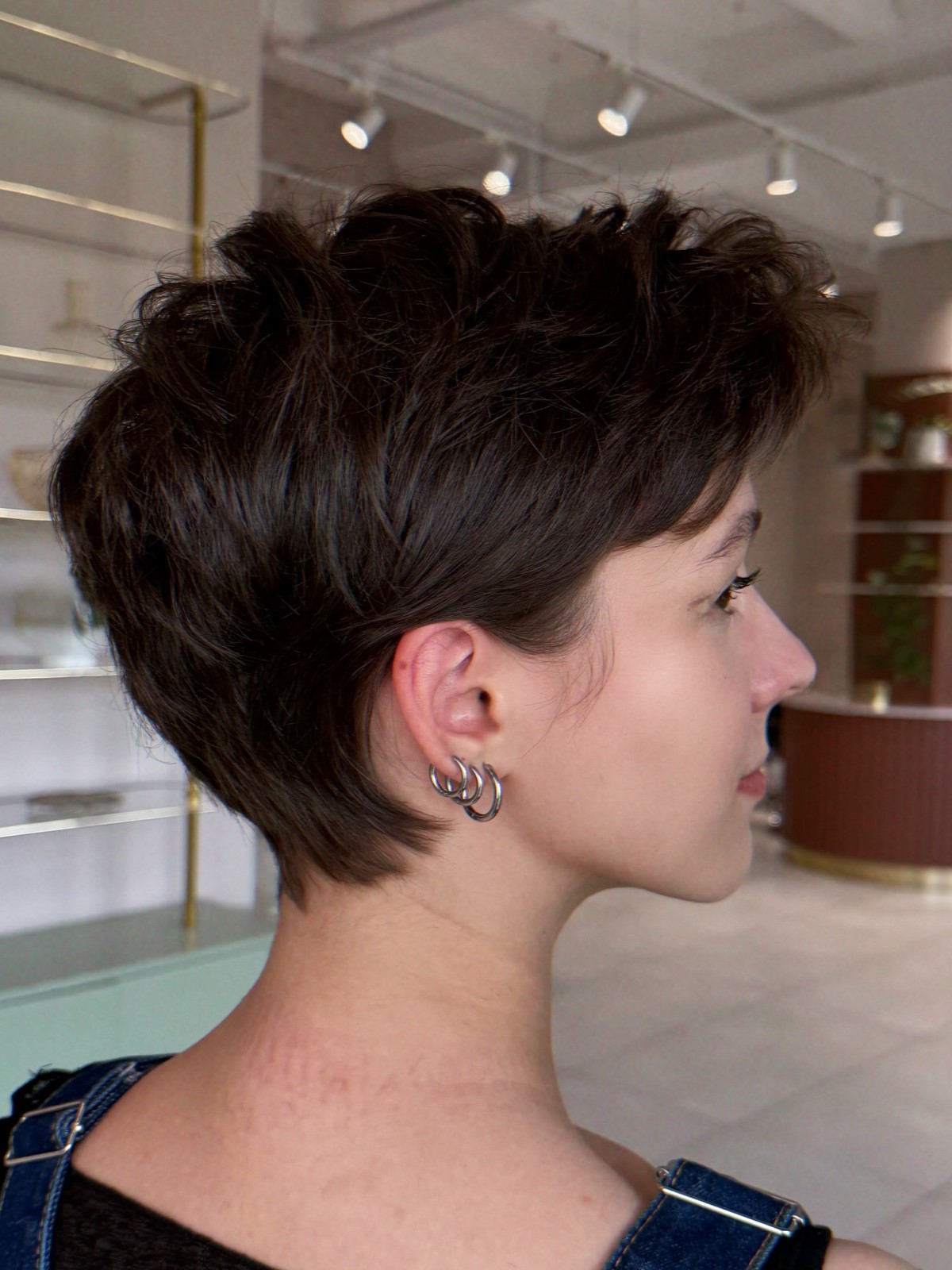 Текстурована піксі з рваними краями додає образу зухвалості і сучасності, ідеально поєднуючись з міським стилем життя.
