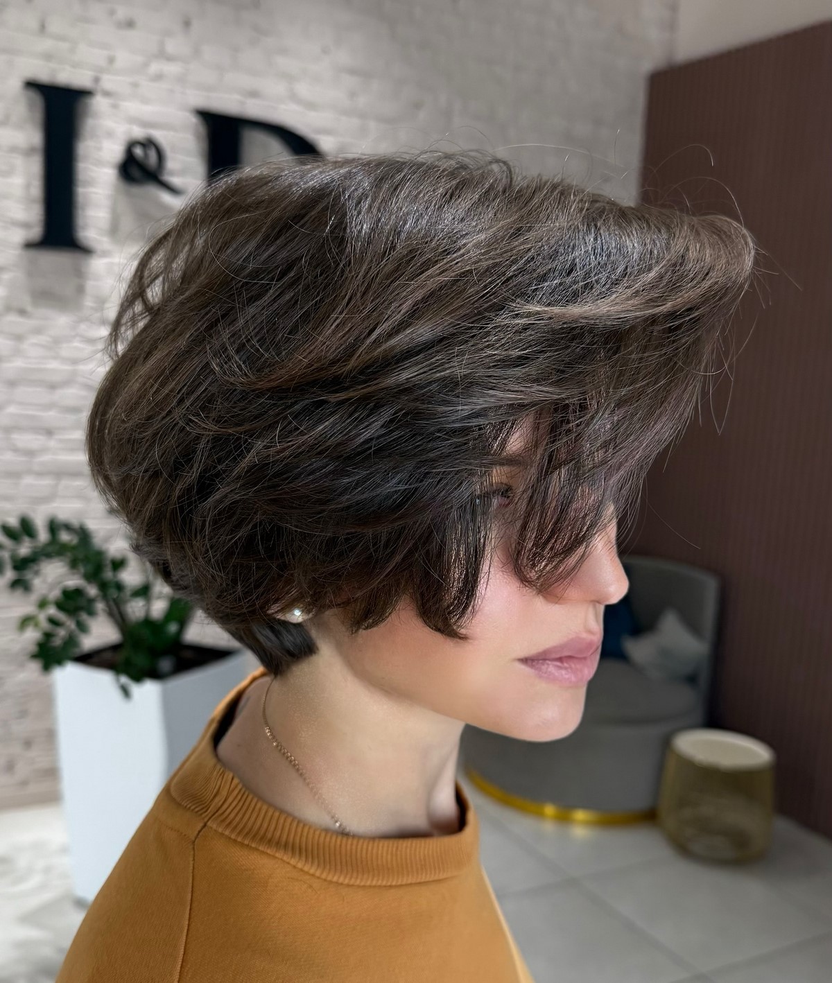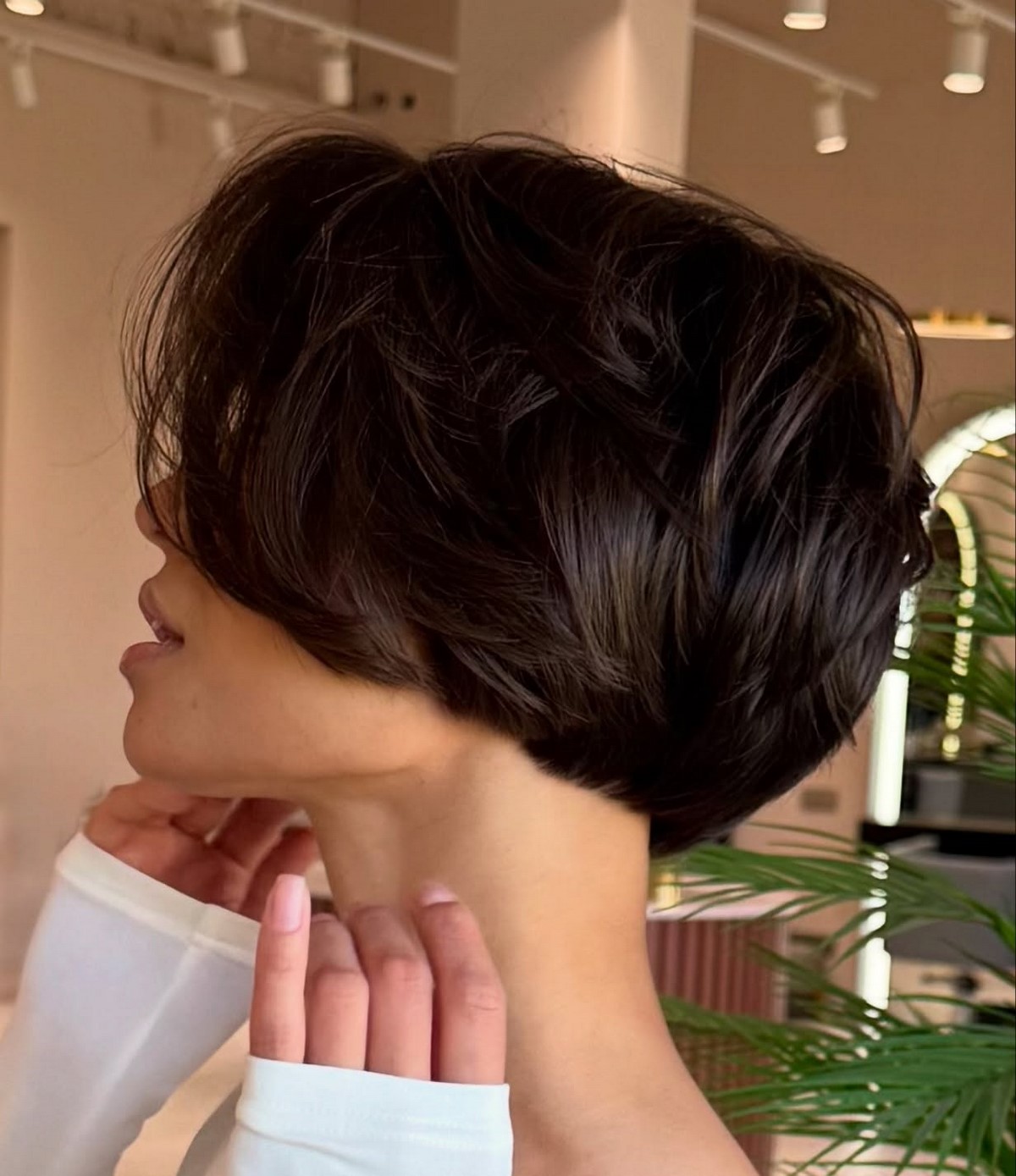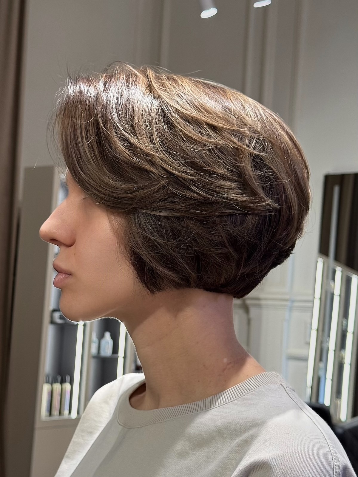 Градуйована біксі додає об’єму і руху волоссю, створюючи ефект природної недбалості, який так цінується в сучасній моді.