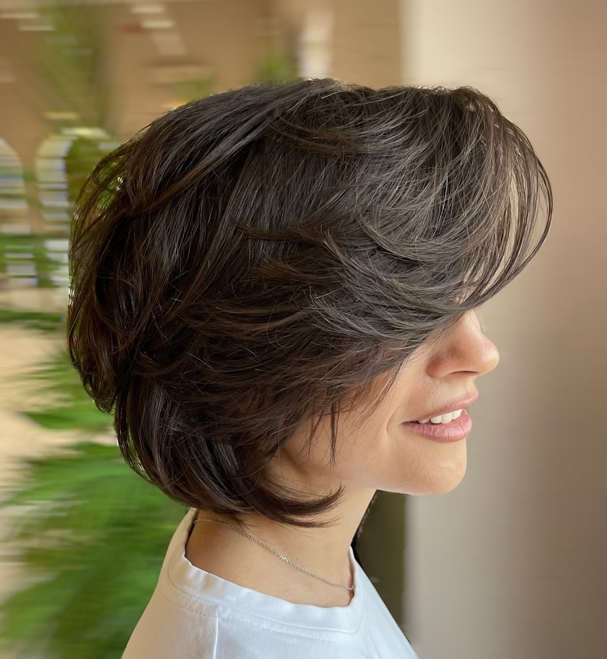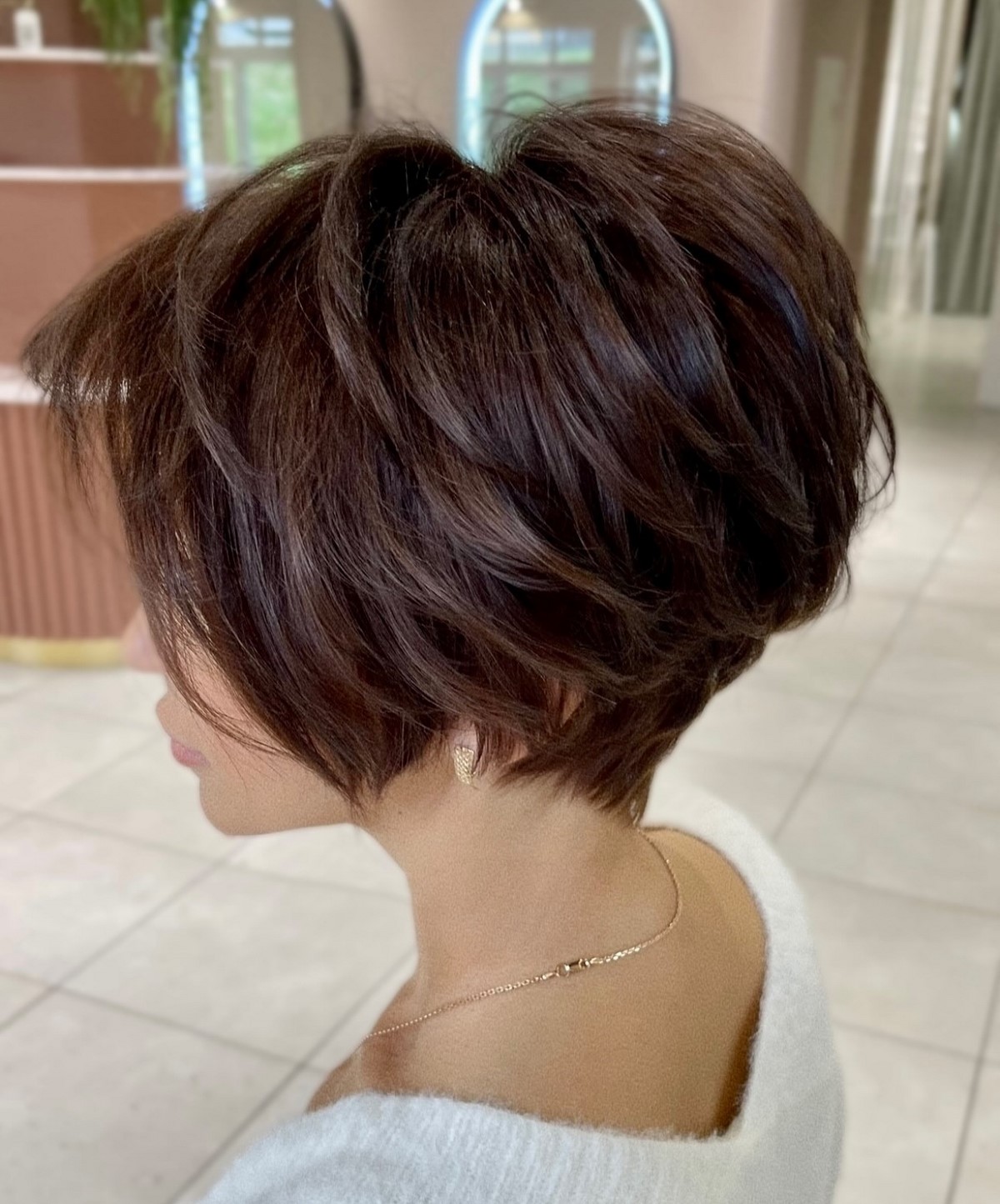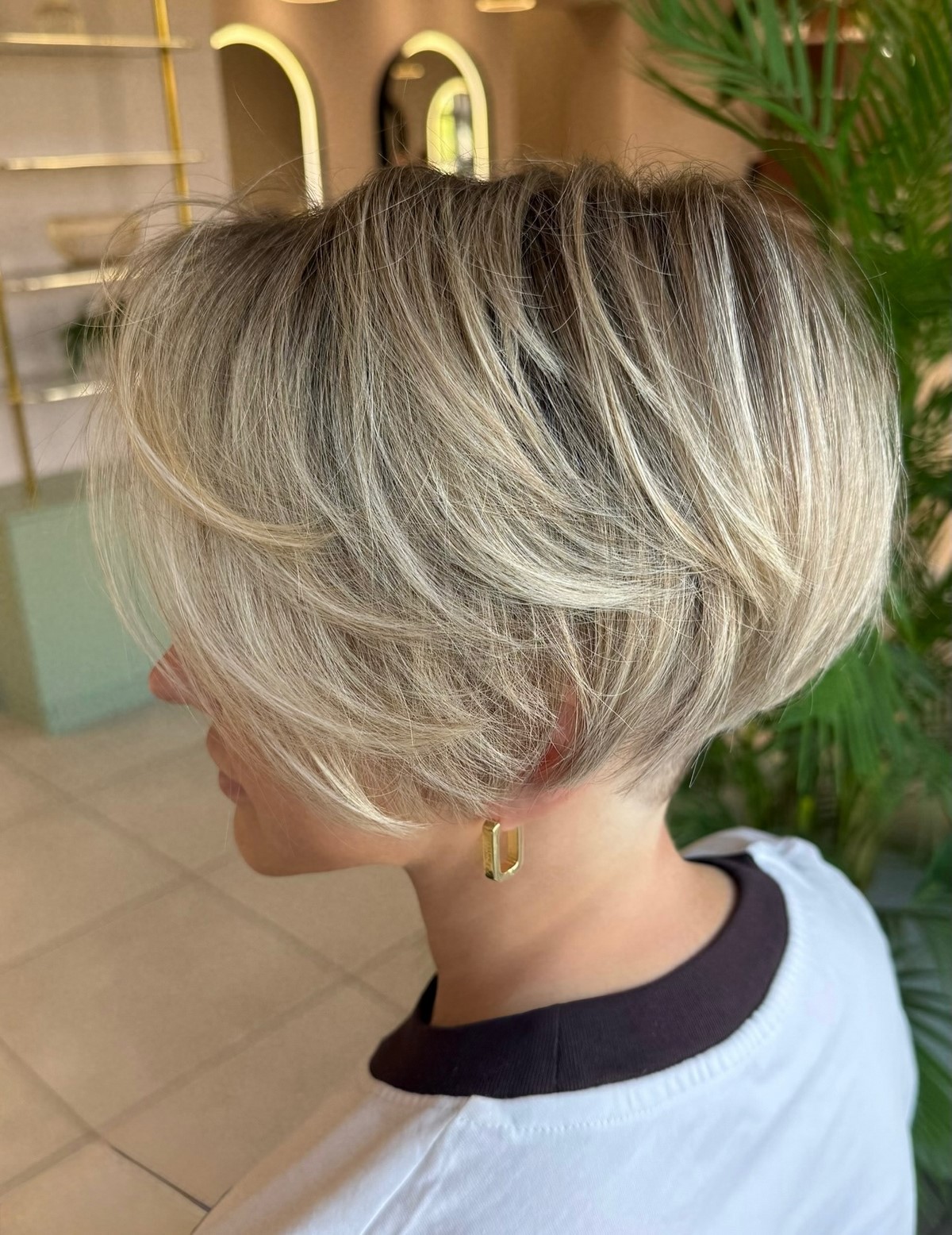 Градуйована біксі додає об’єму і руху волоссю, створюючи ефект природної недбалості, який так цінується в сучасній моді.
