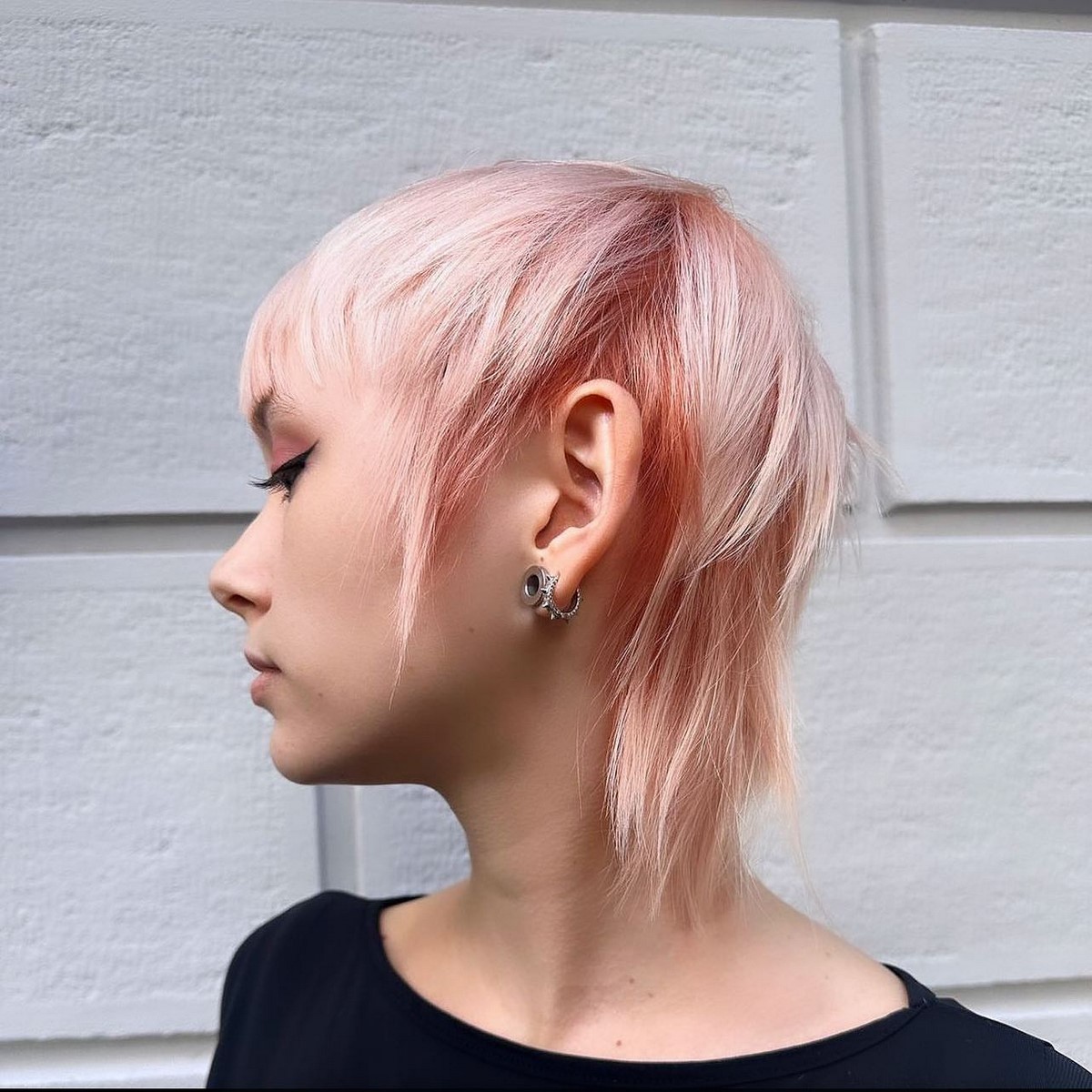 Сучасний шег 2025 року — це стильна інтерпретація ретро-класики з безліччю шарів і текстурованими кінцями. Короткий шег з чубчиком-шторкою створює романтичний і злегка недбалий образ, ідеально підходить для повсякденного носіння. Багатошарова структура стрижки забезпечує природний об’єм і рух волосся.