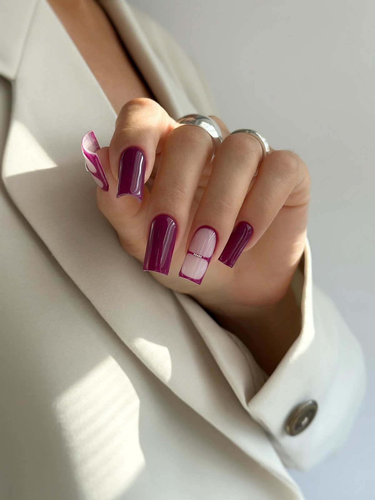 Асиметрія та індивідуальність – ще одна відмінна риса тренду. Кожен ніготь може мати свій неповторний дизайн, що робить манікюр по-справжньому авторським. Це дозволяє жінкам проявити креативність і створити nail-арт, який буде відображати їхній настрій і стиль.