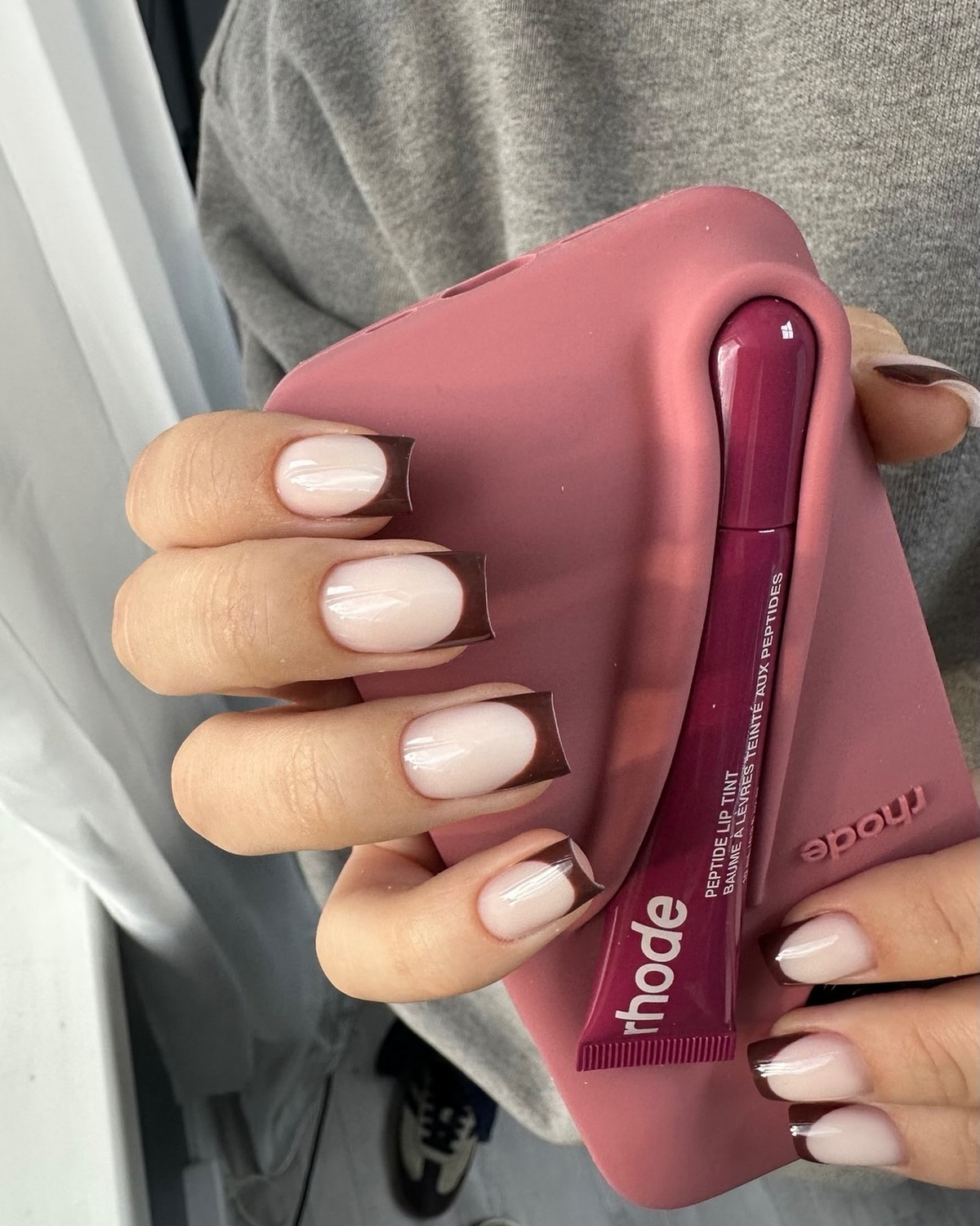 Осінній френч 2025 року кардинально відрізняється від свого класичного попередника. Головна особливість сезонного дизайну полягає у використанні глибоких, насичених відтінків, які співзвучні з палітрою в’янучої природи. Замість звичного білого кінчика майстри пропонують теракотові, винні, шоколадні та смарагдові тони.