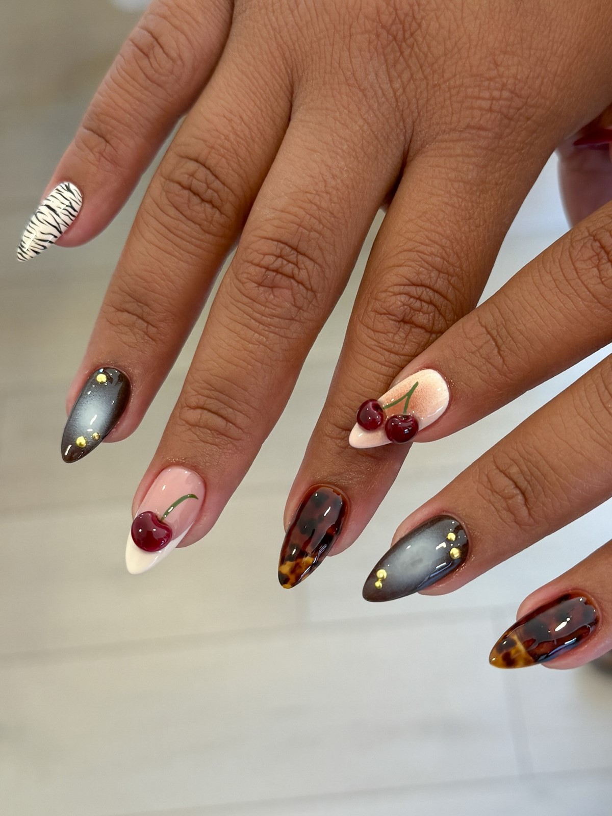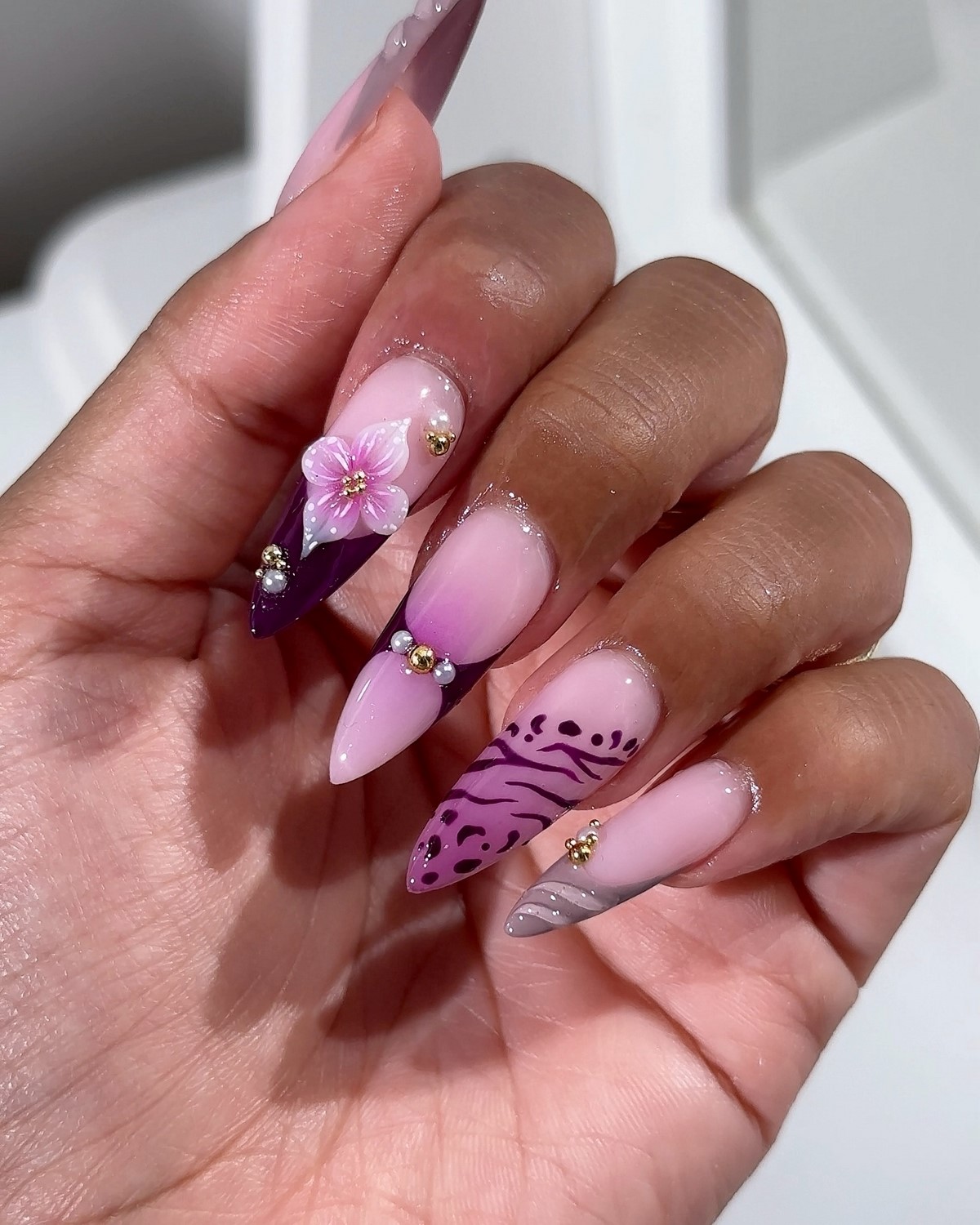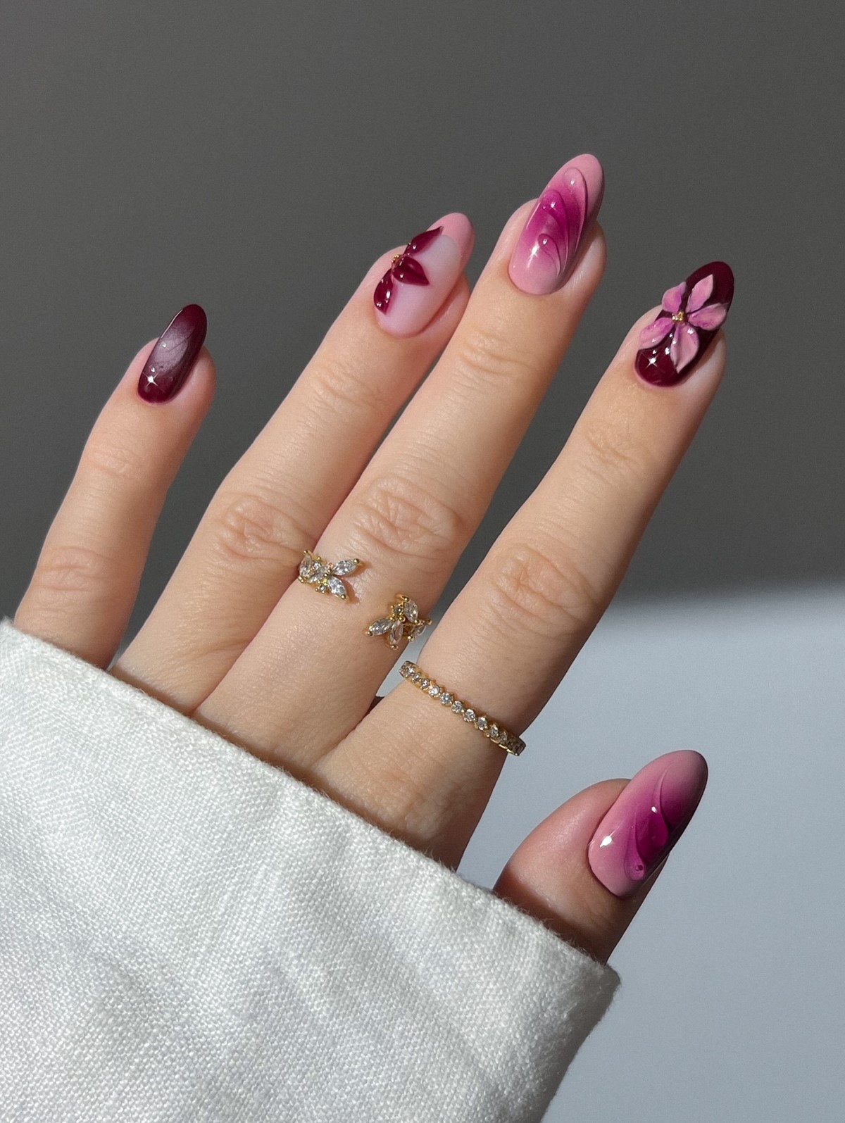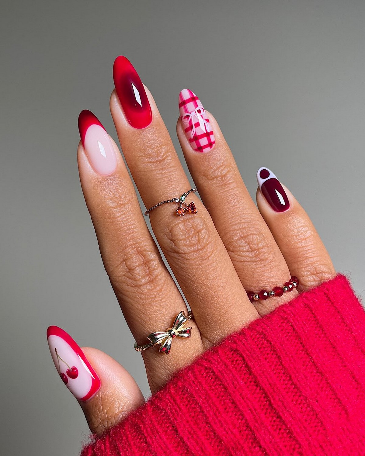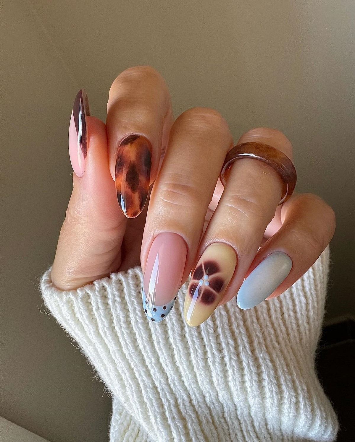 Техніка поєднання різних дизайнів на кожному нігті дозволяє проявити максимальну креативність. В рамках одного манікюру можуть поєднуватися різні текстури, кольори і декоративні елементи. Головне правило – збереження загальної колірної гами або стилістичного напрямку, щоб результат виглядав гармонійно, а не хаотично.