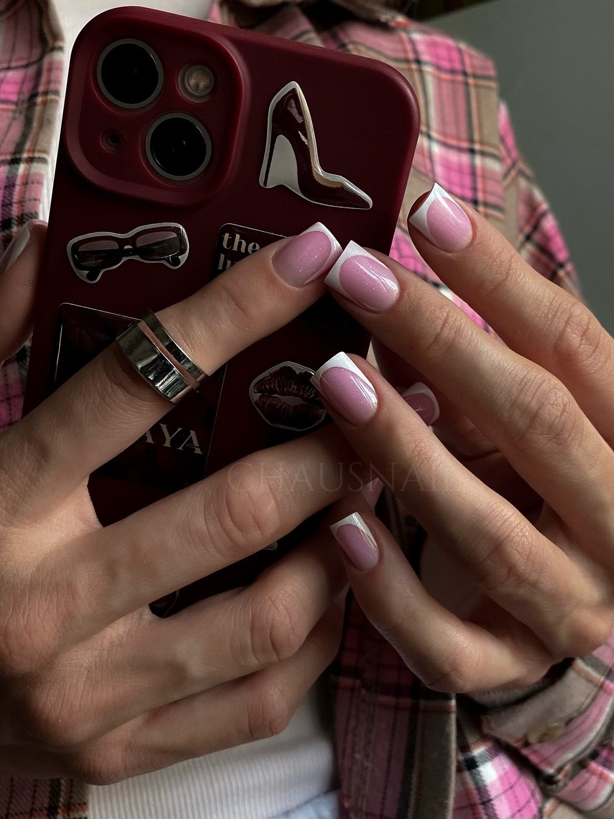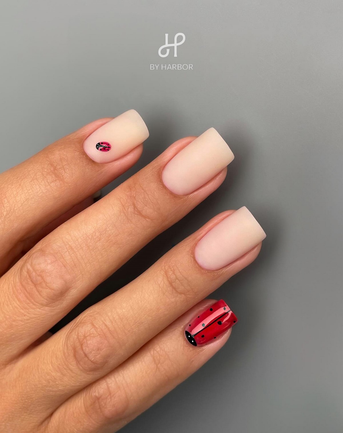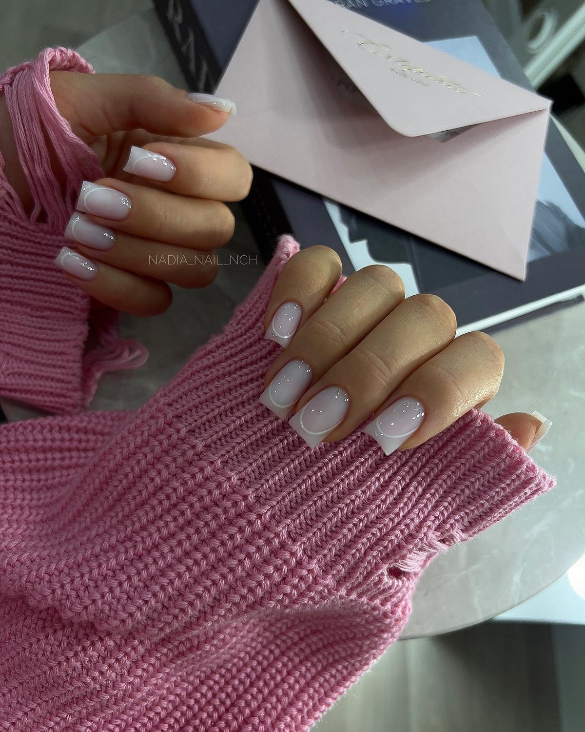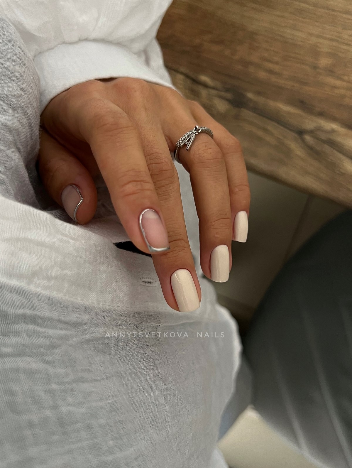Класичний французький манікюр переосмислюється через додавання грайливих елементів на вільний край нігтя. Горошок може бути виконаний в контрастних або тональних кольорах щодо основного покриття. Такий підхід робить традиційний дизайн більш сучасним і придатним для повсякденного носіння.
