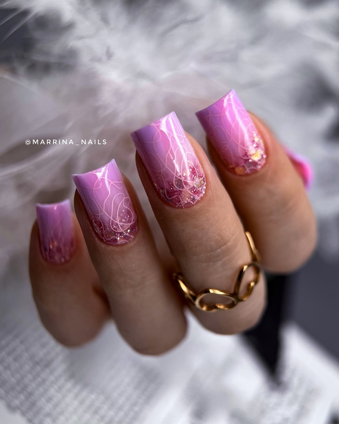 Градієнтний манікюр залишається трендом, пропонуючи м’які переходи між відтінками. У січні 2025 року популярні комбінації холодних кольорів, таких як синій і сріблястий, або пастельних зимових відтінків. Такий дизайн має ніжний вигляд і підходить для будь-якого випадку.
