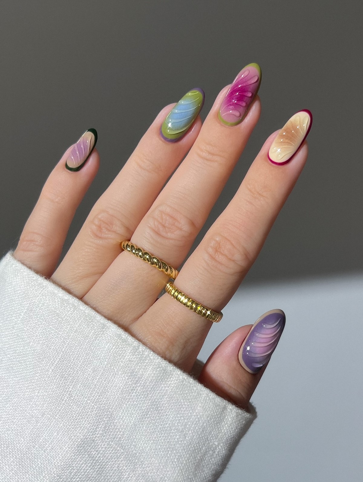 Дизайнери роблять акцент на глибоких, багатошарових переходах, які створюють об’ємний ефект на нігтьовій пластині.