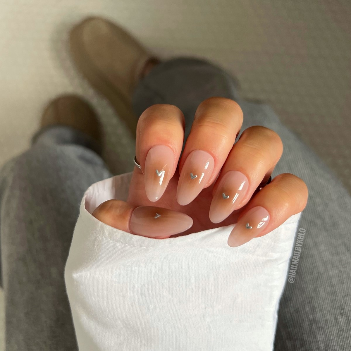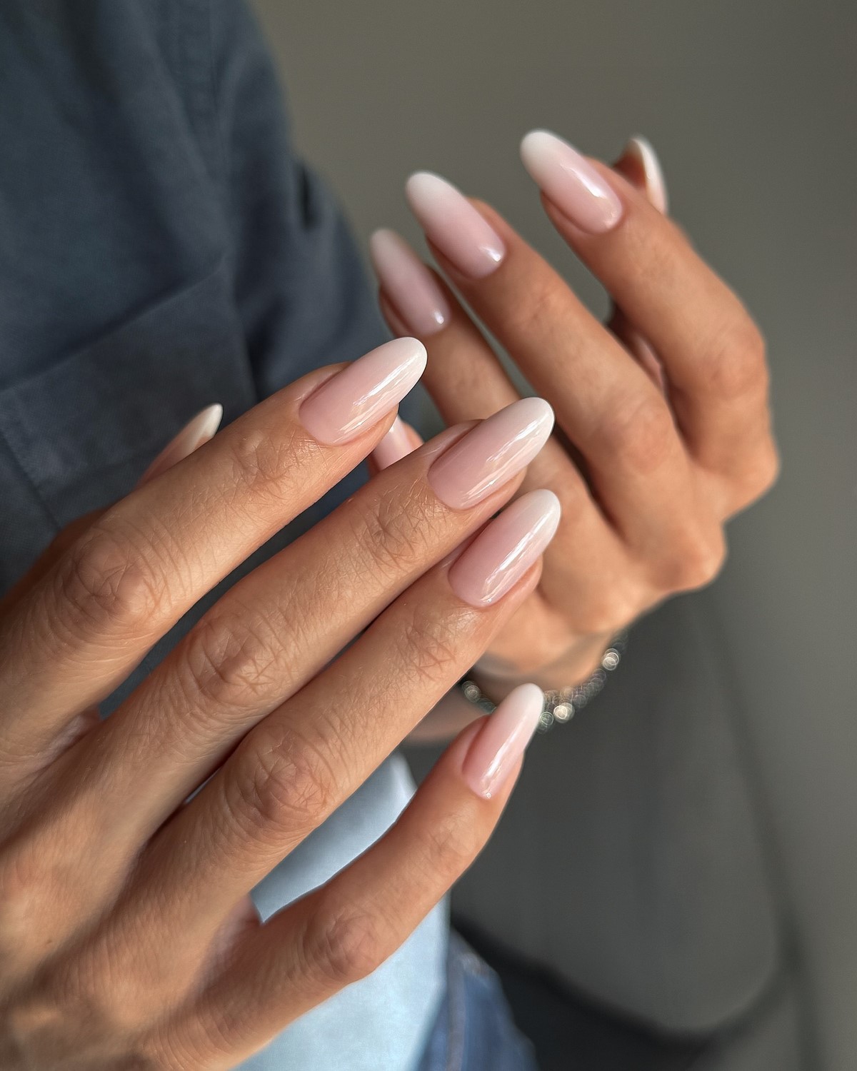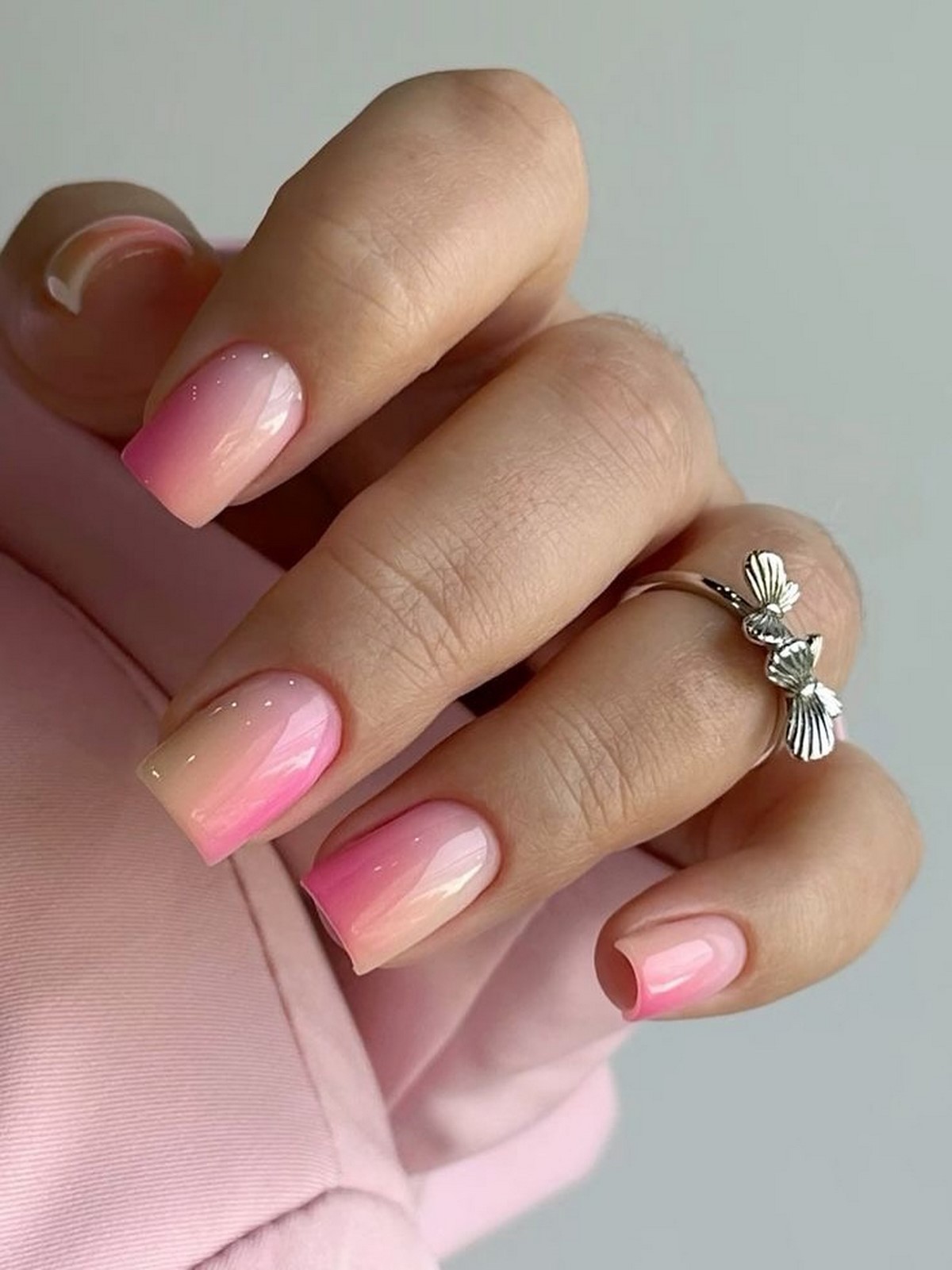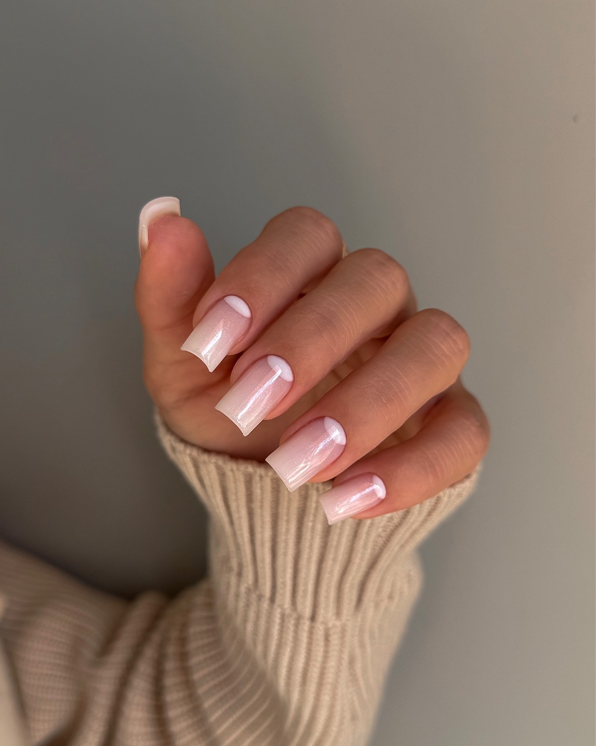 Ніжні нюдові переходи залишаються класикою осіннього манікюру. Градієнти створюються від прозорої бази до молочно-бежевого або від світло-рожевого до кремового. Техніка ідеальна для офісного стилю і повсякденного носіння, підходить до будь-якого образу.