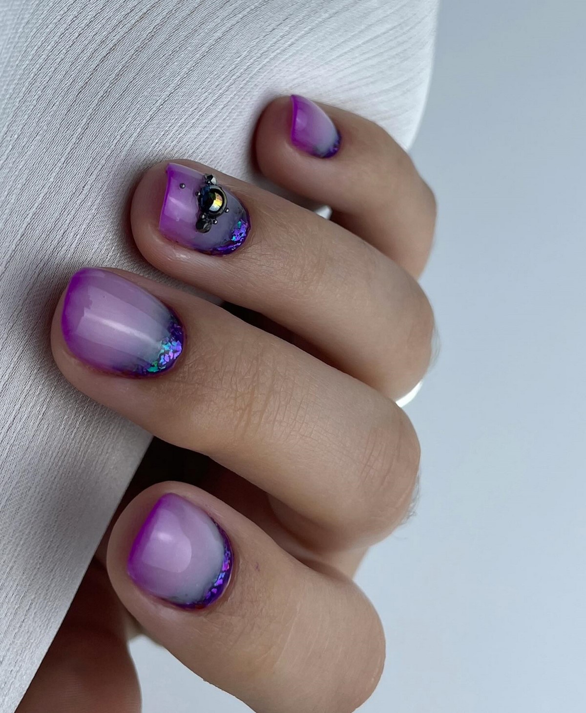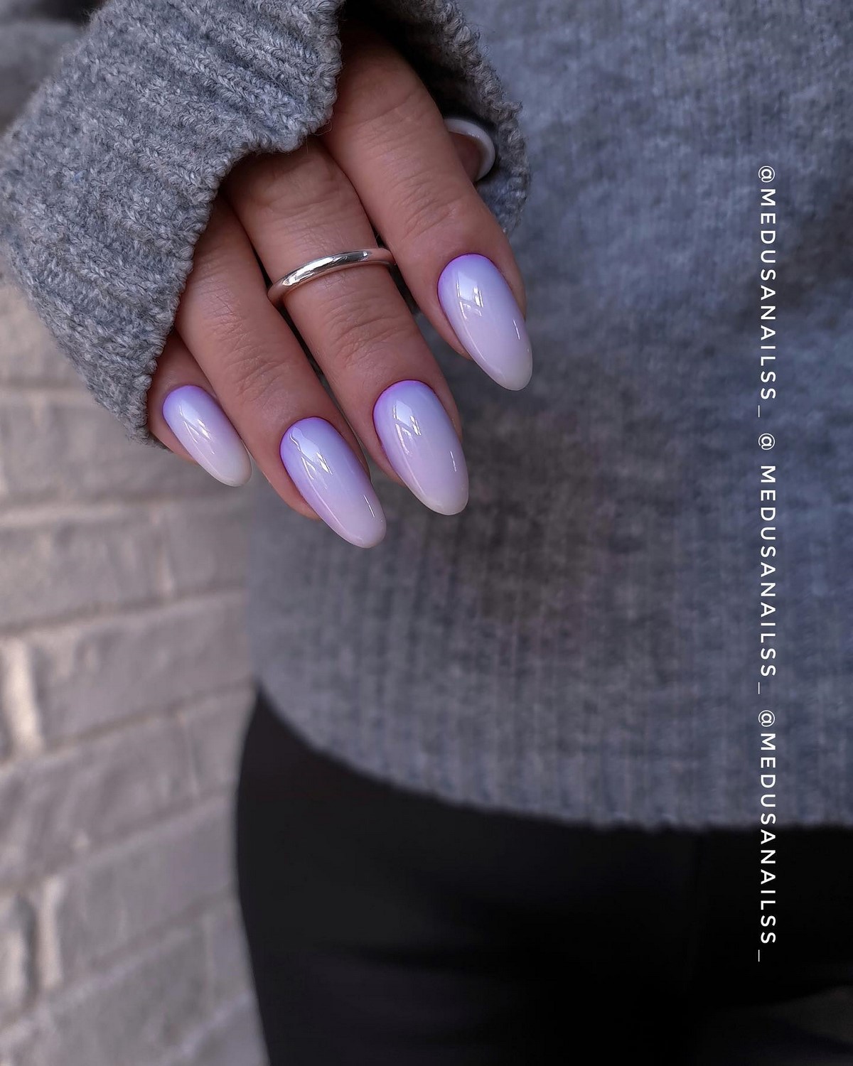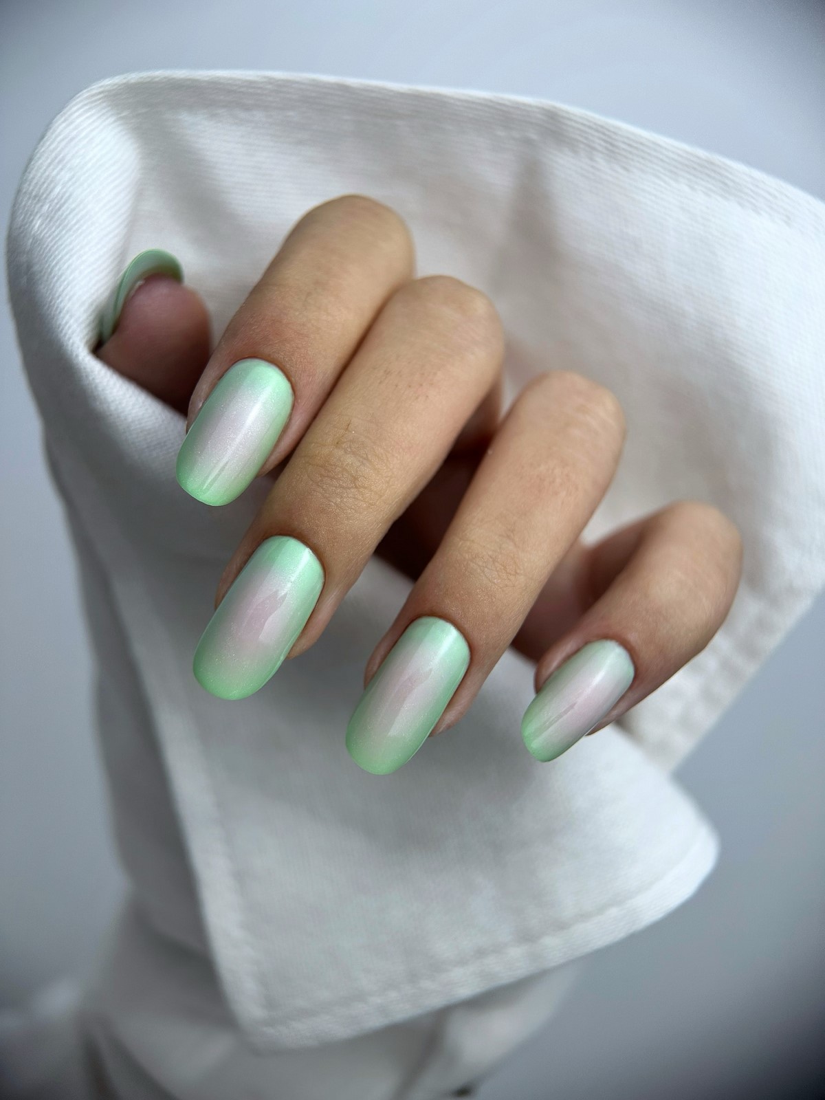 Пастельні градієнти осені 2025 відрізняються особливою м’якістю переходів. Використовуються приглушені відтінки лаванди, м’яти, персика з переходом до прозорої бази або білого кольору. Такі дизайни створюють романтичний і жіночний образ, ідеально підходять для особливих випадків.