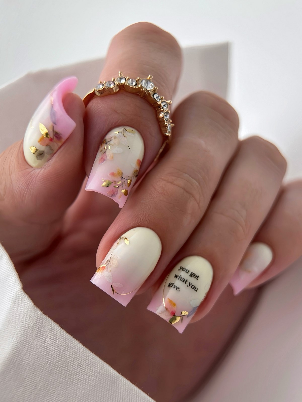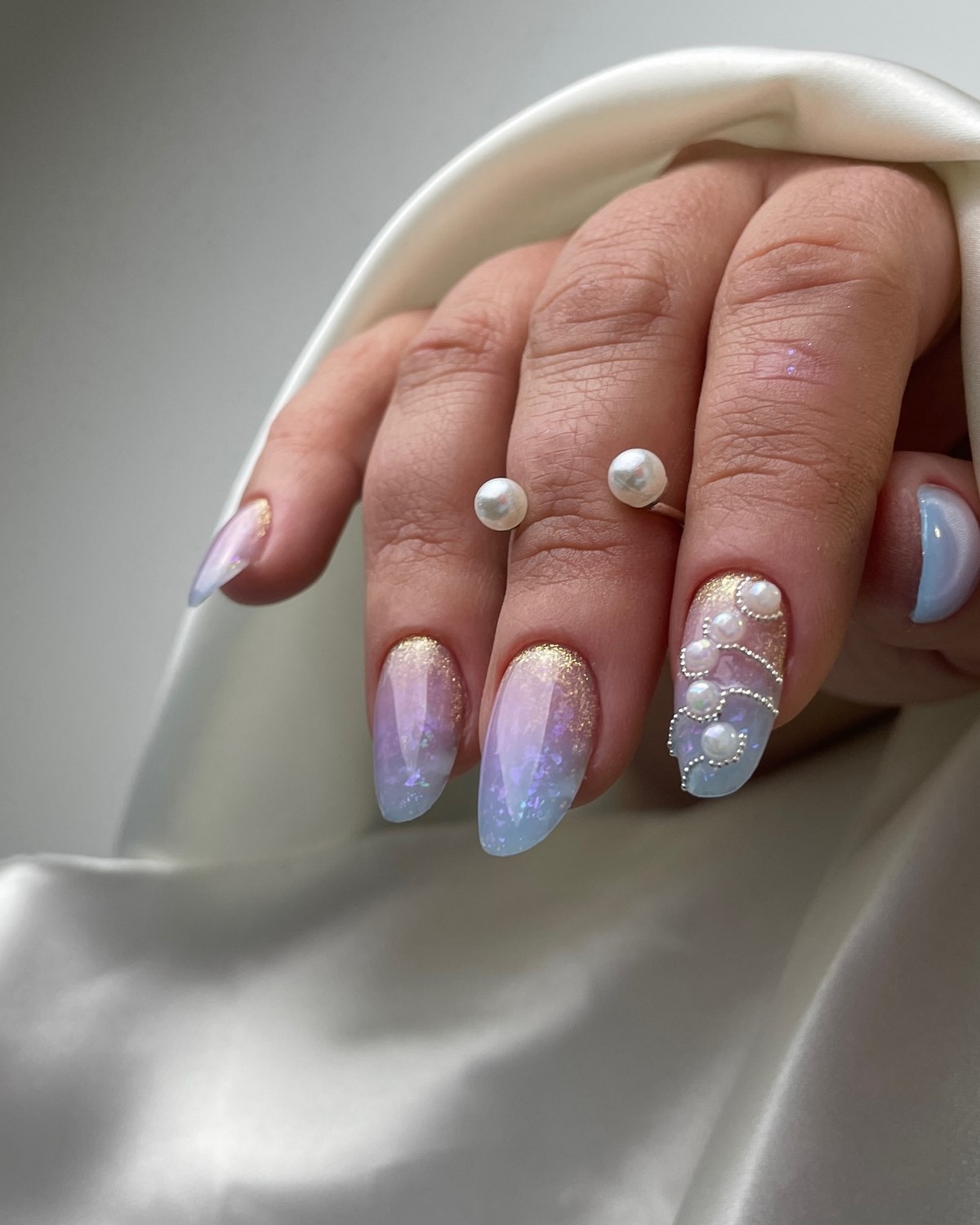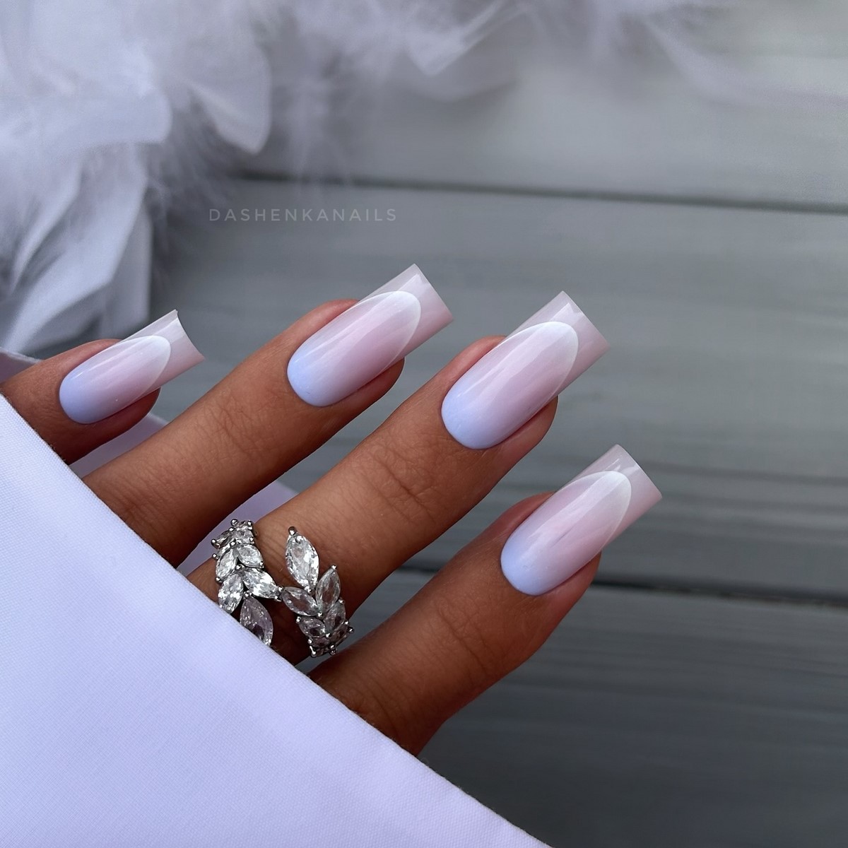 Пастельні градієнти осені 2025 відрізняються особливою м’якістю переходів. Використовуються приглушені відтінки лаванди, м’яти, персика з переходом до прозорої бази або білого кольору. Такі дизайни створюють романтичний і жіночний образ, ідеально підходять для особливих випадків.
