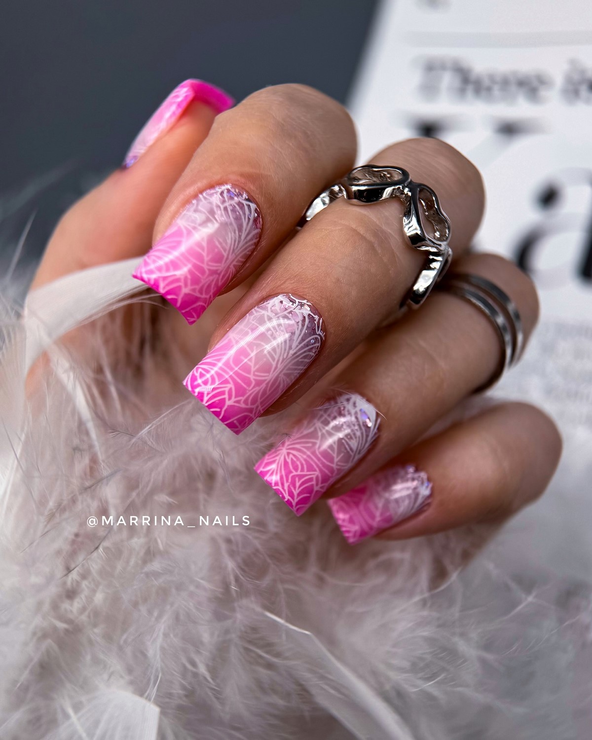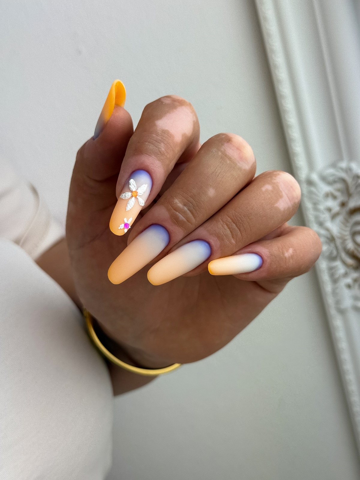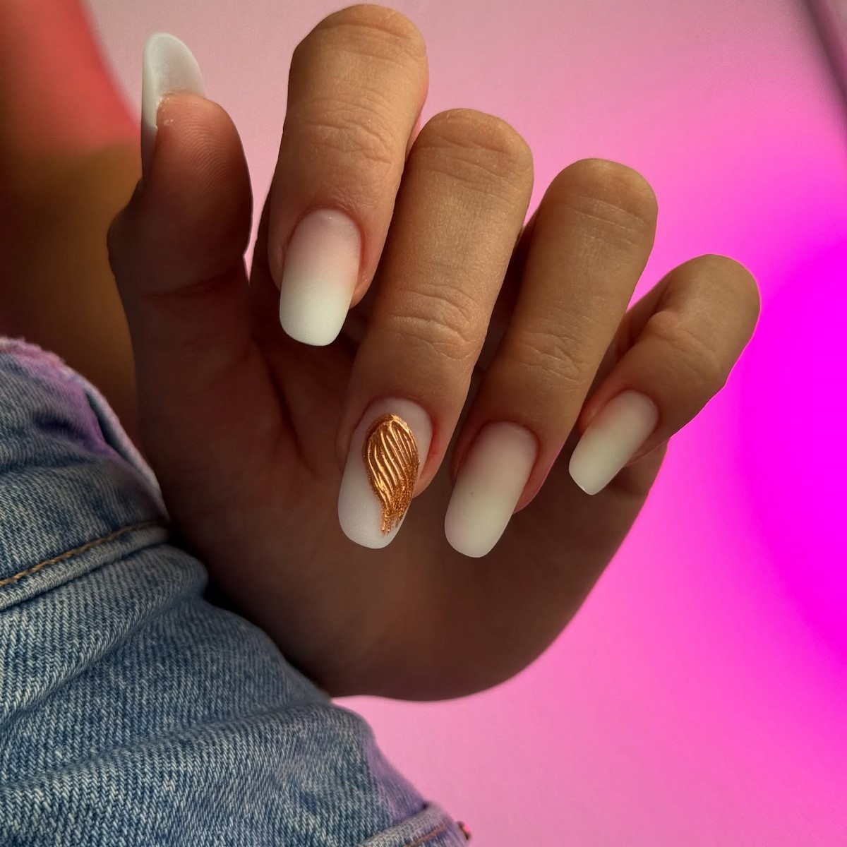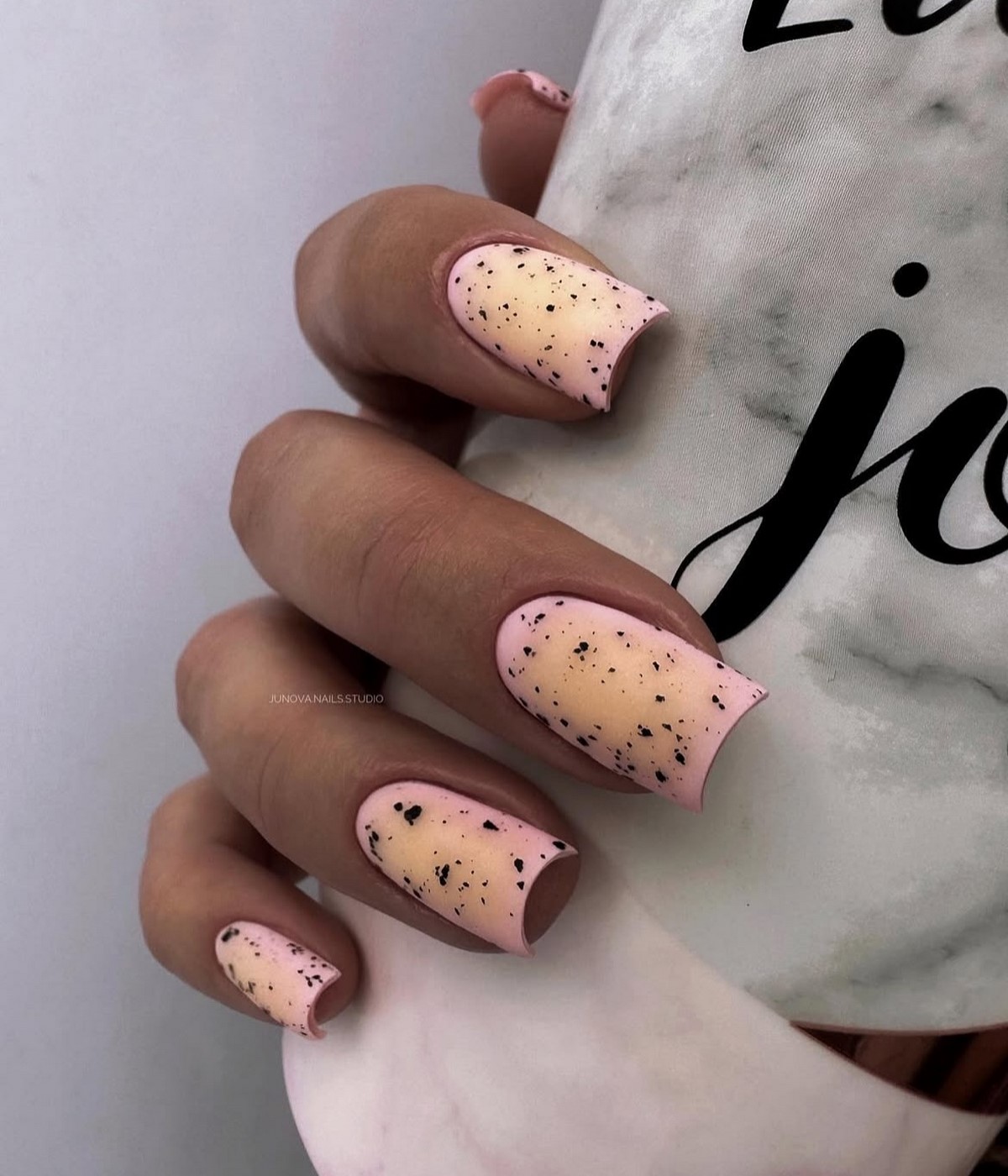 Матові градієнти створюють оксамитову текстуру з м’якими колірними переходами. Осінні рішення включають переходи від світлих нюдових до насичених коричневих або від пильно-рожевого до глибокого марсала. Фінішне покриття матовим топом надає манікюру особливої елегантності.