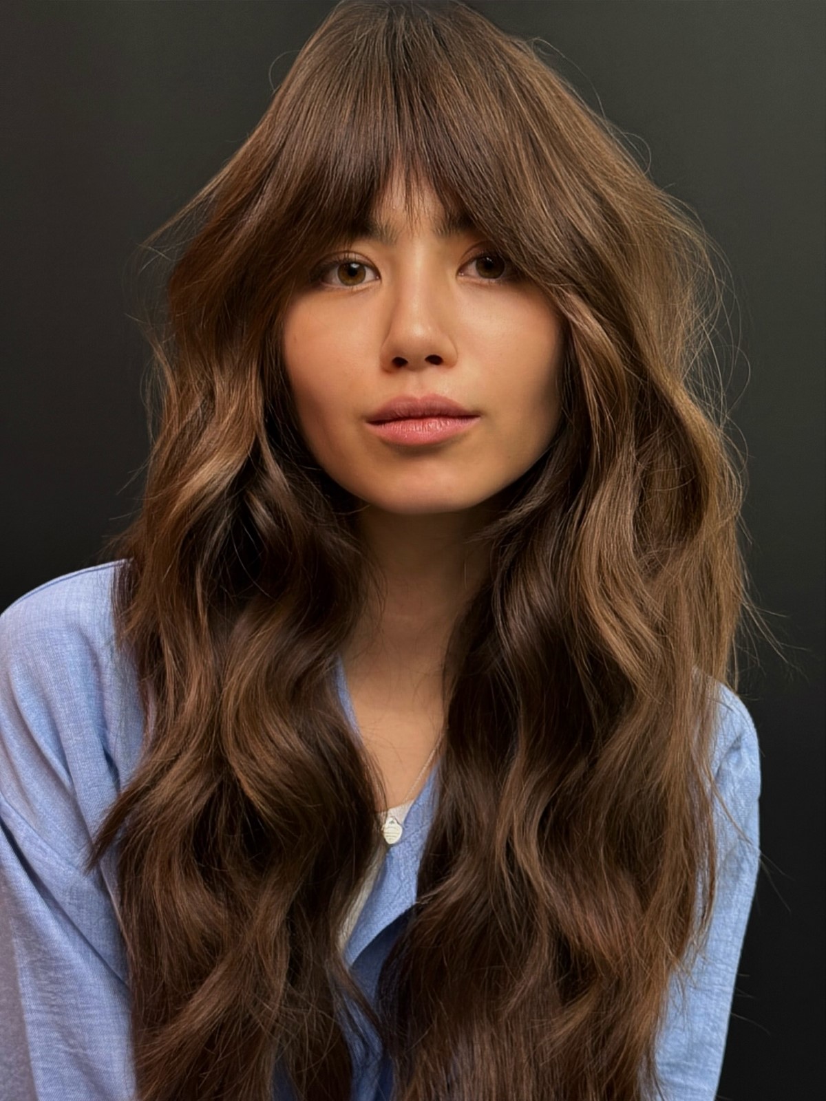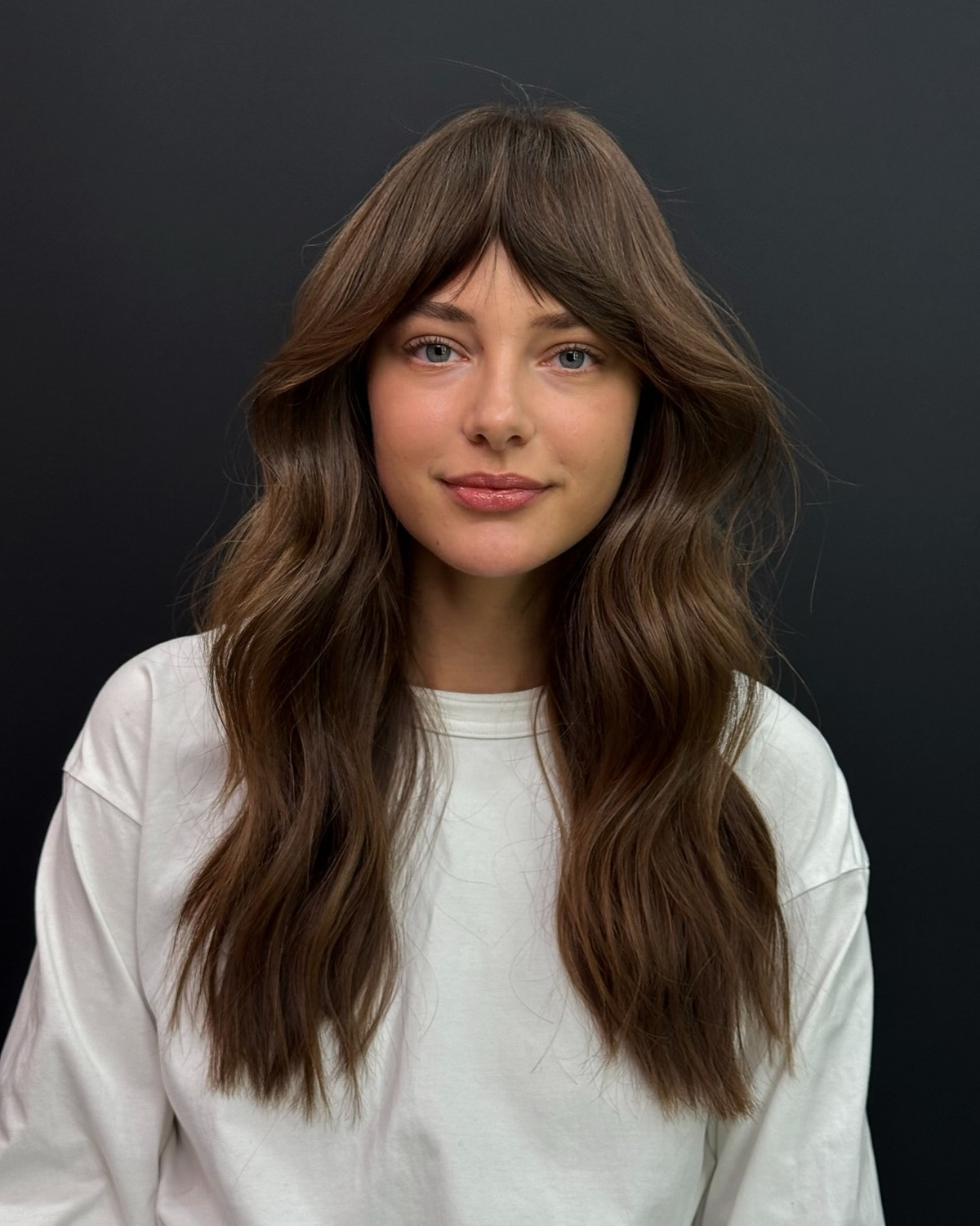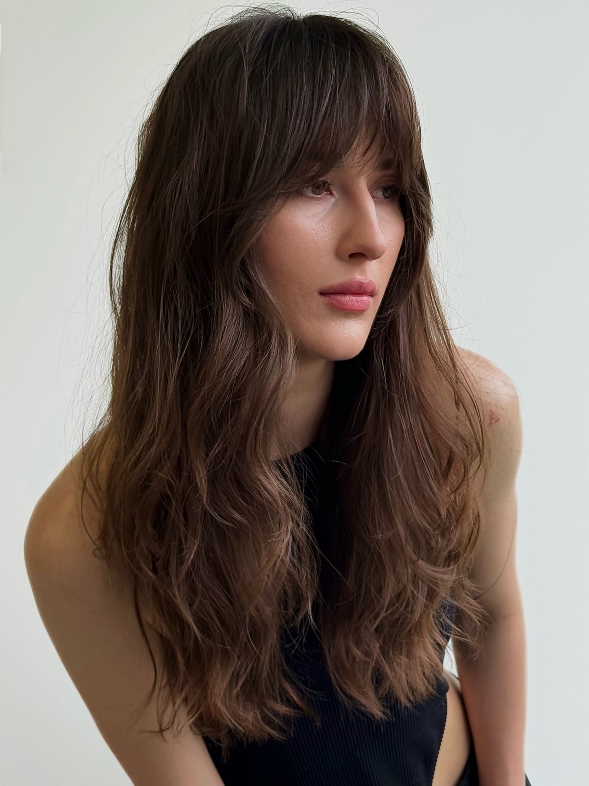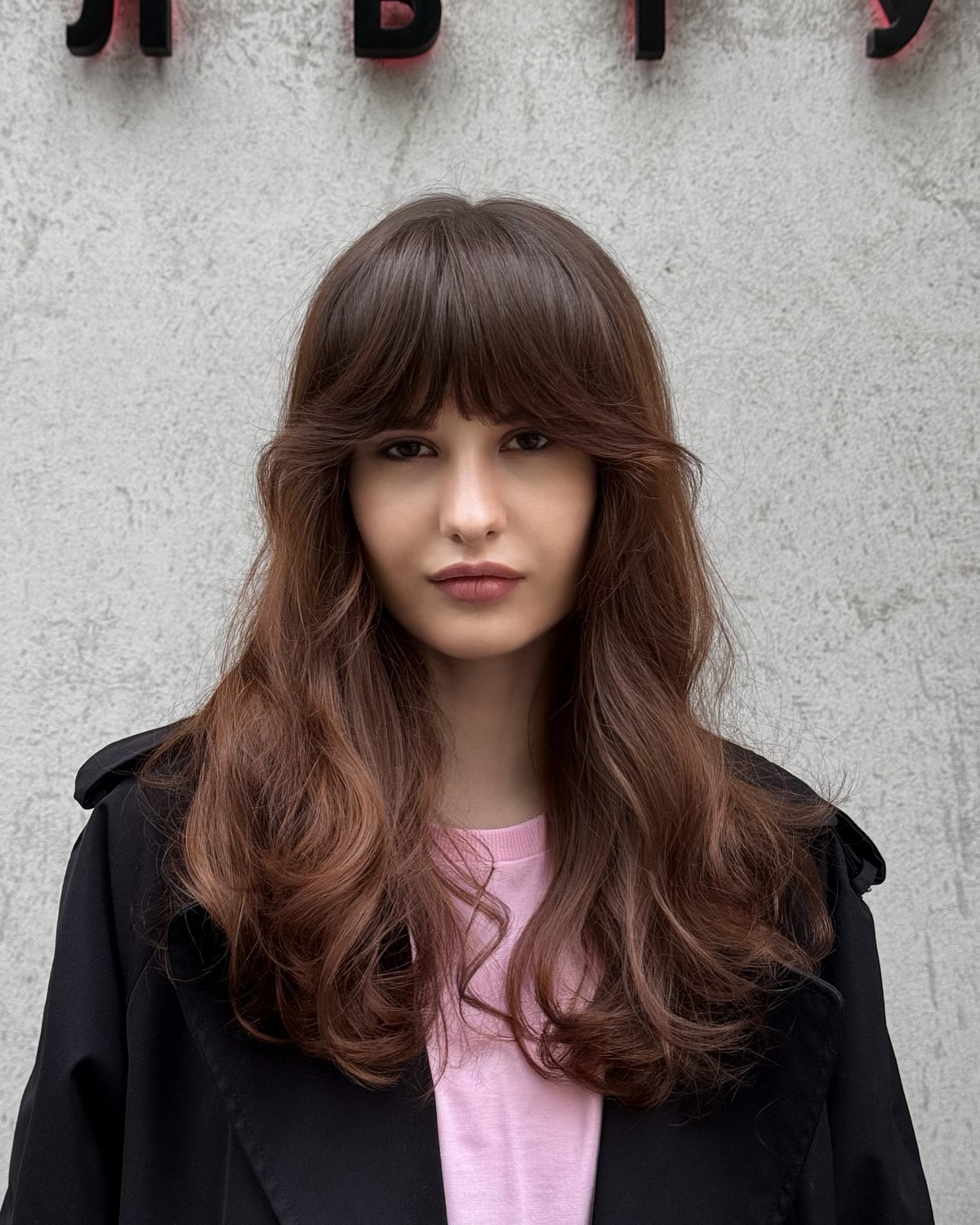 Довгі чубчики в 2025 році стають універсальною альтернативою. Їх можна зачісувати вбік, прибирати в зачіску або залишати вільно падати. Вони підкреслюють глибину погляду і додають образу загадковості. Відмінний варіант для дівчат, які хочуть чубчик, але не готові до кардинальних змін.