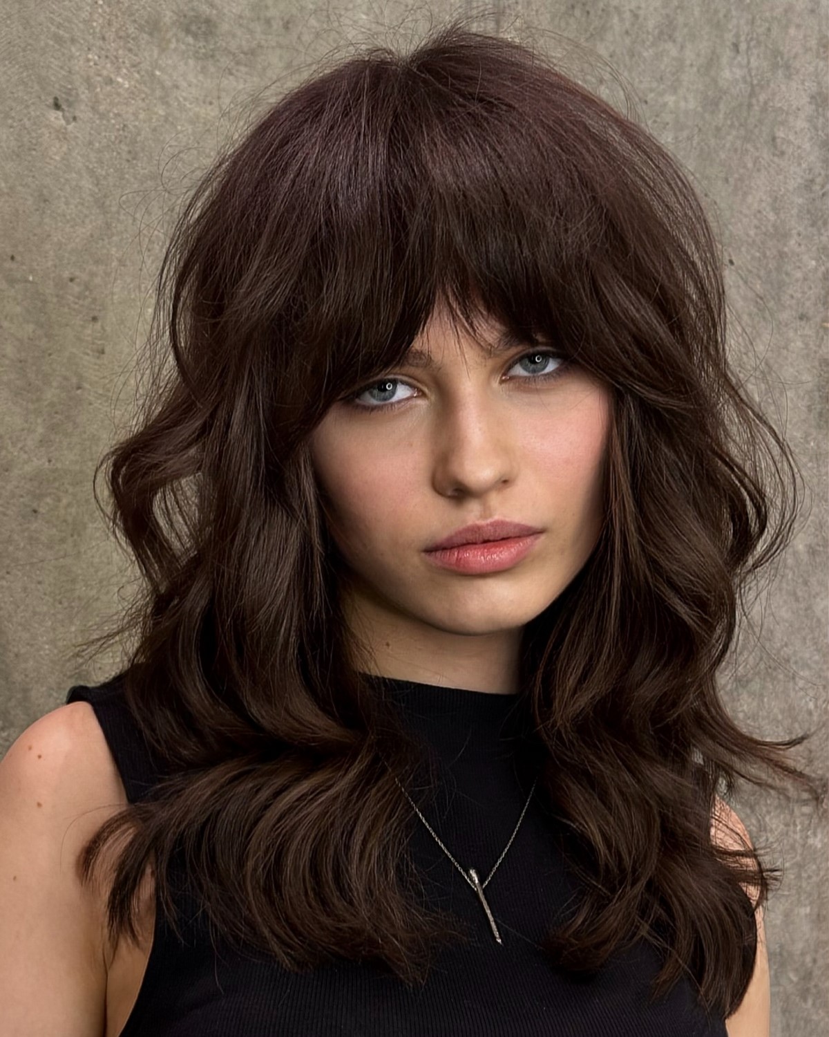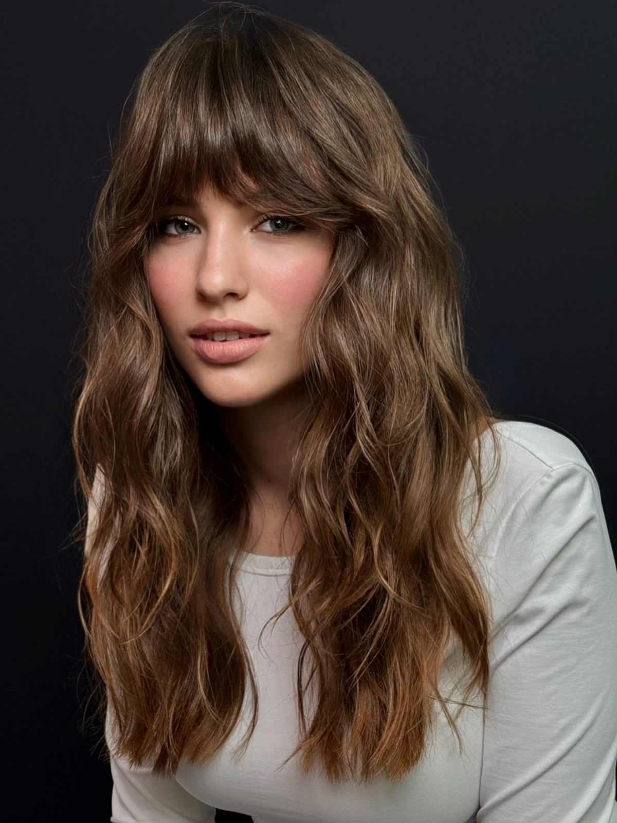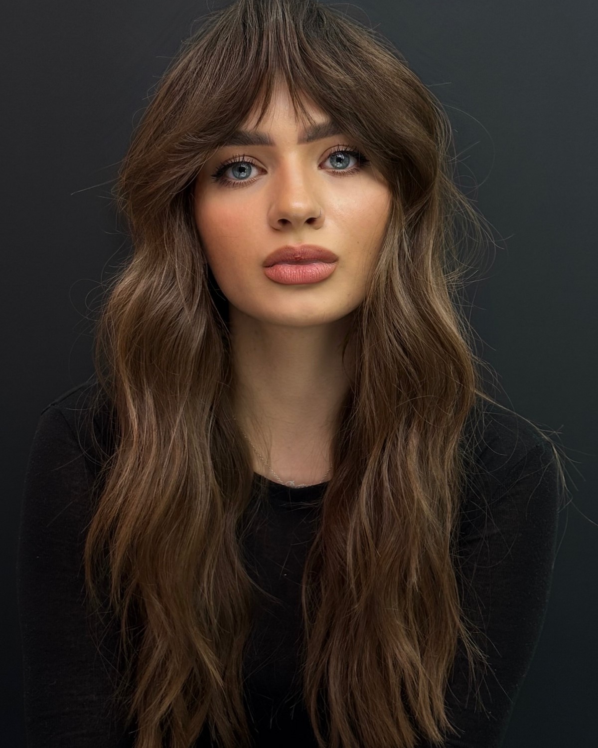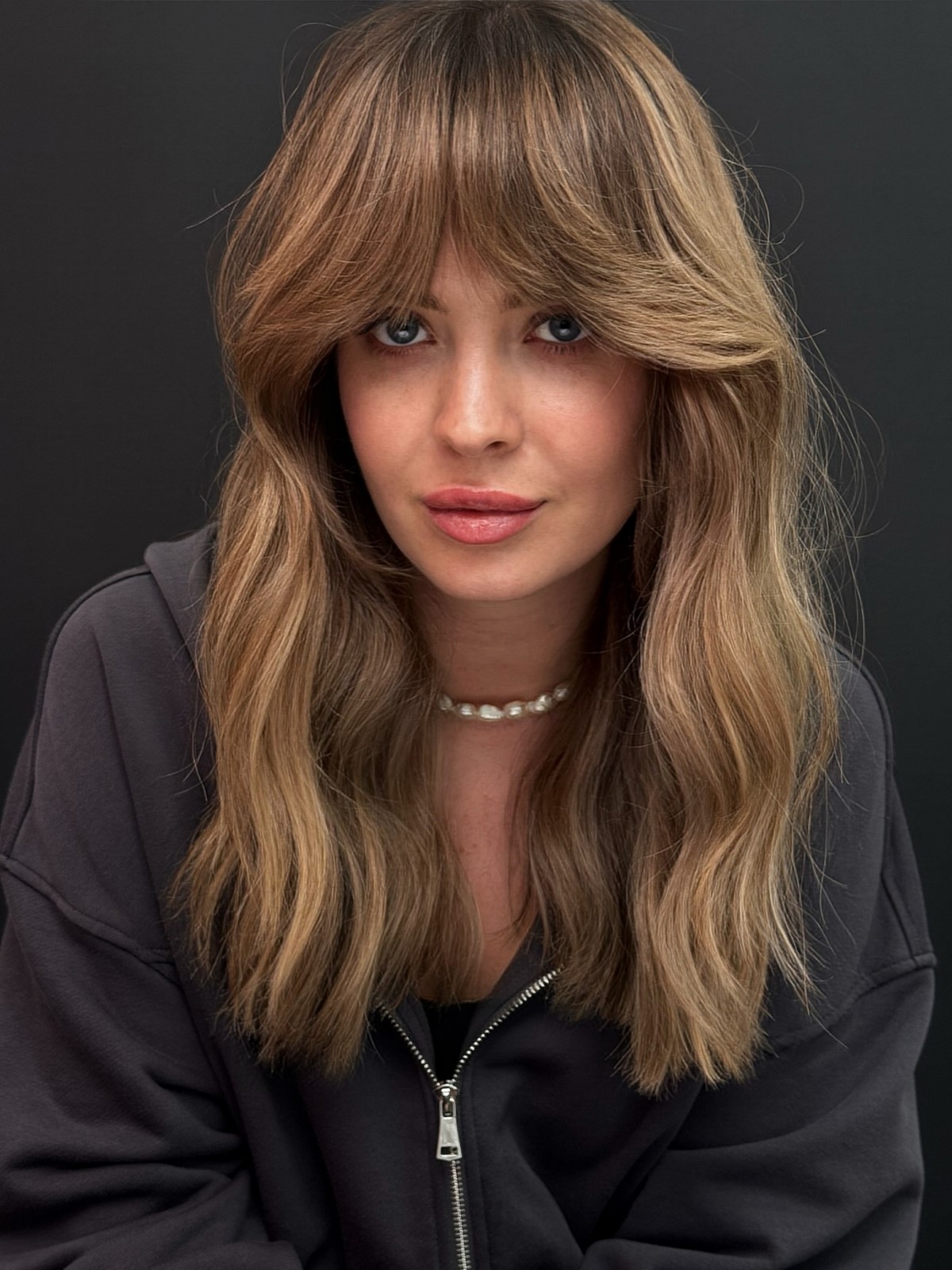 Довгі чубчики в 2025 році стають універсальною альтернативою. Їх можна зачісувати вбік, прибирати в зачіску або залишати вільно падати. Вони підкреслюють глибину погляду і додають образу загадковості. Відмінний варіант для дівчат, які хочуть чубчик, але не готові до кардинальних змін.