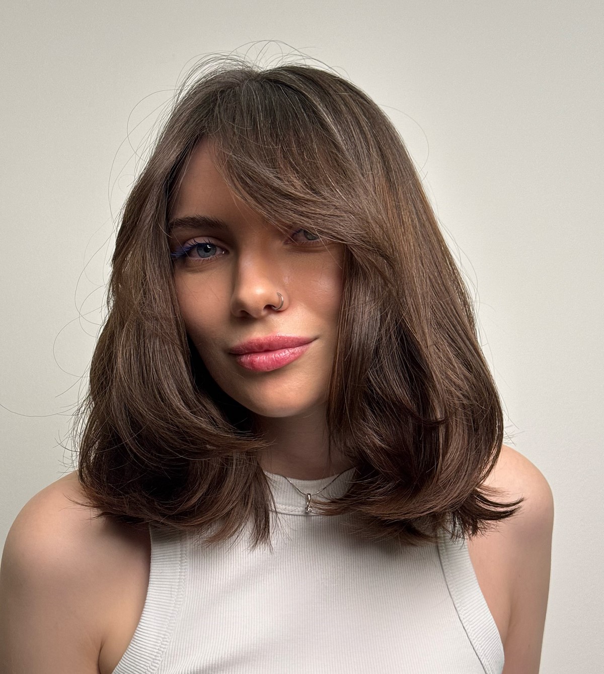 Багатошаровість в 2025 році займає особливе місце: вона допомагає надати об’єм і текстуру навіть тонкому волоссю. Такий чубчик м’яко зливається з пасмами і робить стрижку більш живою. Відмінний вибір для дівчат, які віддають перевагу природності і легкості.