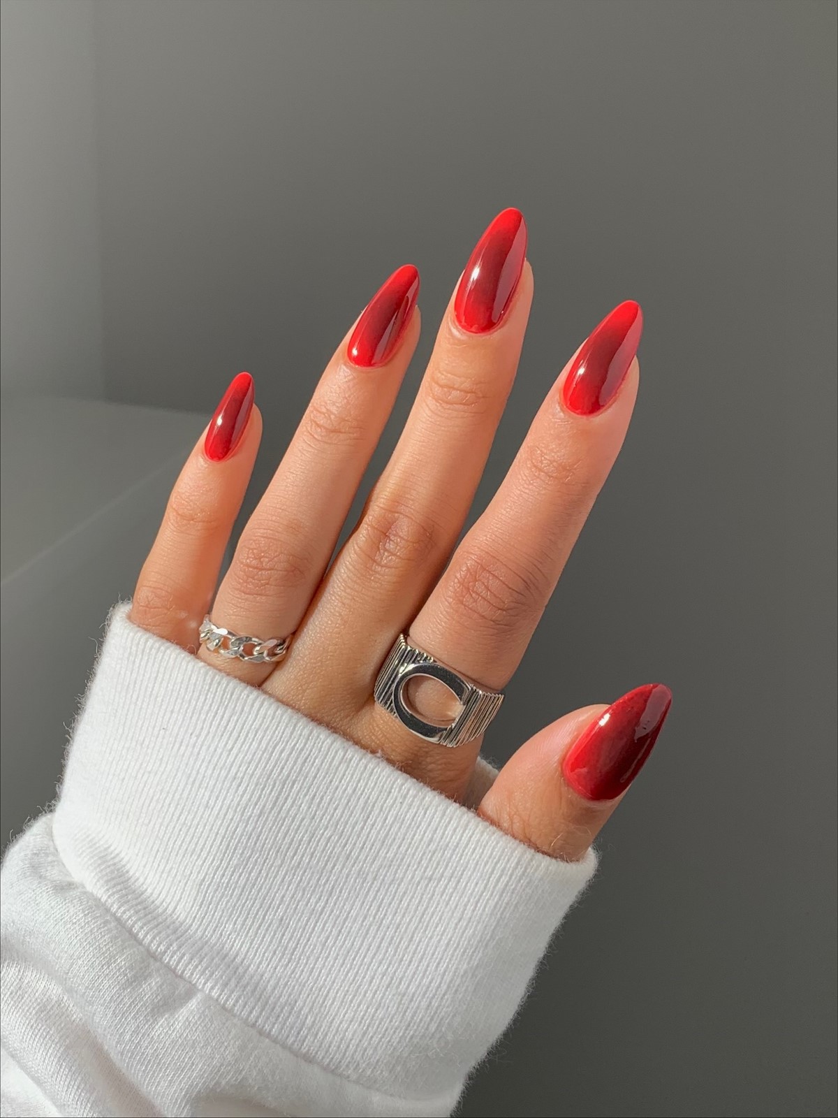 Актуально: рубіновий колір вважається одним з найбільш фотогенічних відтінків зими 2026 року — він ідеально виглядає в кадрі і підсилює візуальне сприйняття шкіри рук.