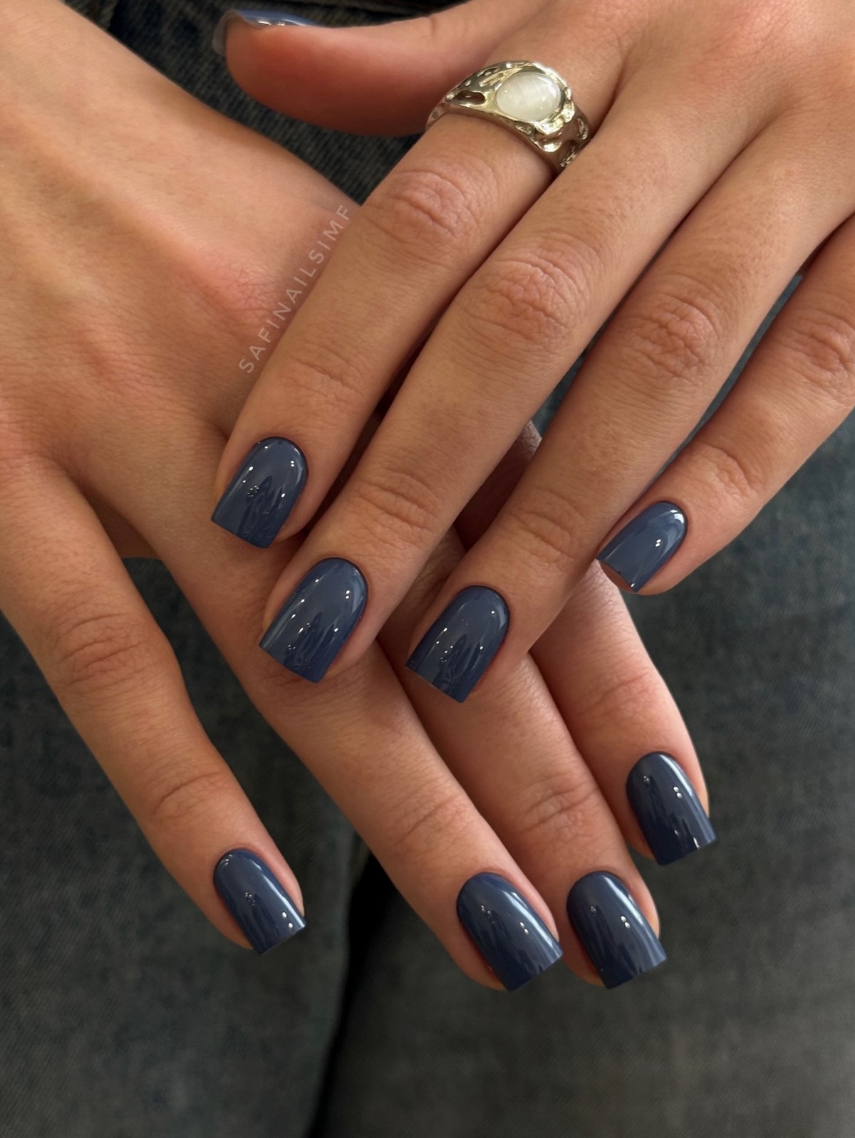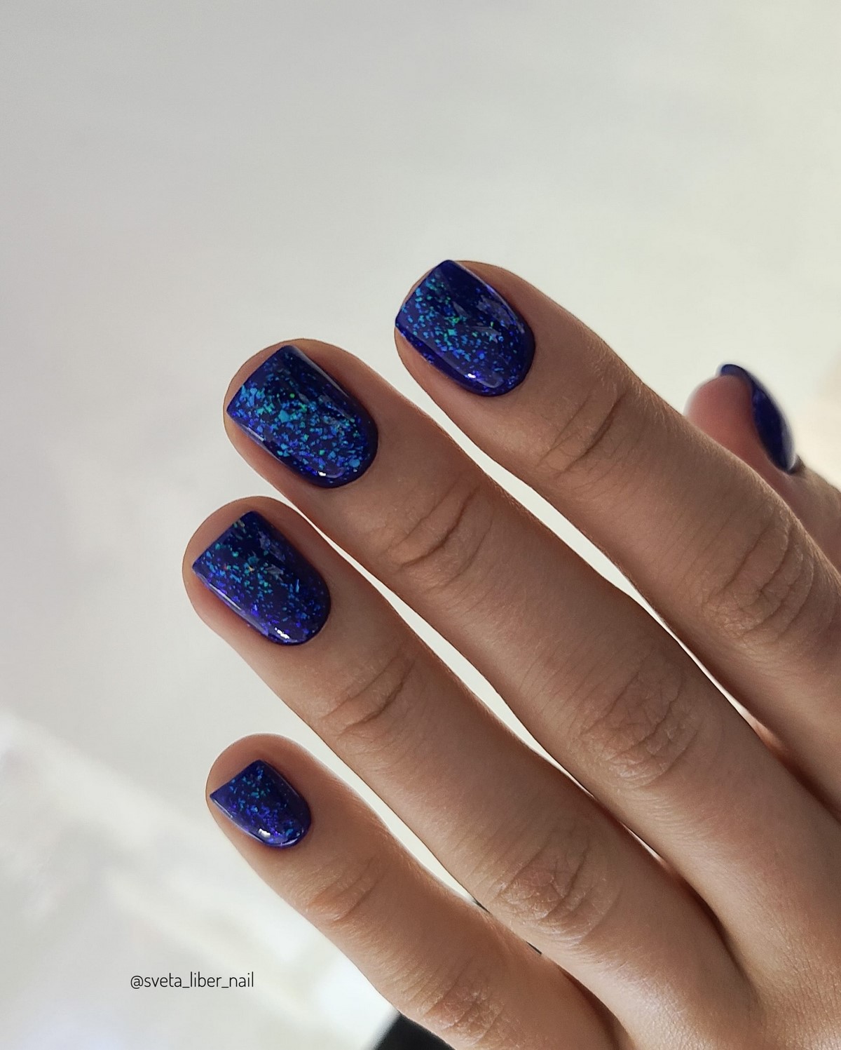 Блакитний колір ідеально підходить для мінімалістичних дизайнів, а також для комбінацій з молочним, сріблястим або прозорим фінішем. Особливо актуальний ефект «крижаного» блиску або сатинової текстури.