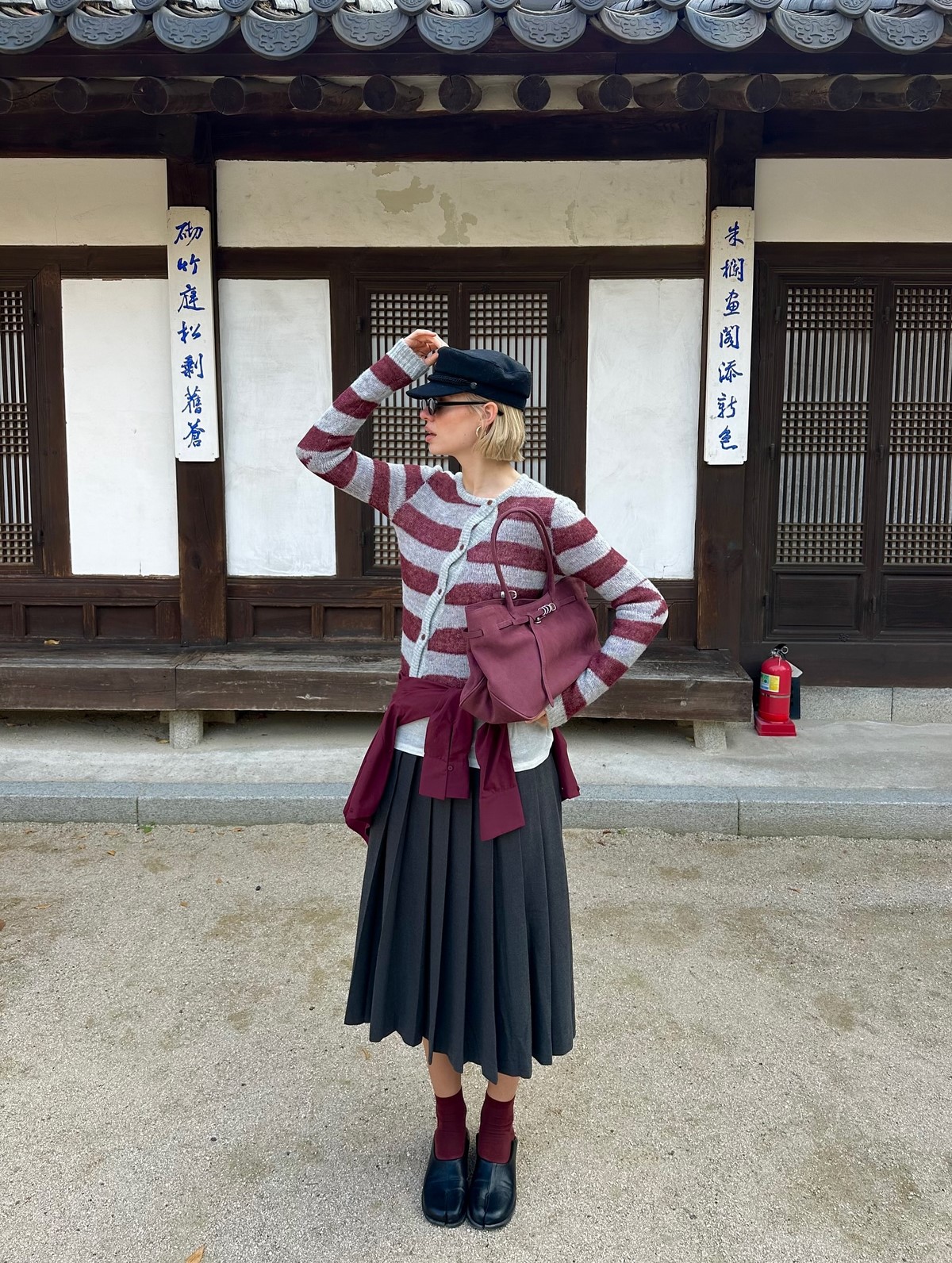 Кольорова смужка повертається в моду, але в більш стильному і продуманому виконанні. Взимку 2025–2026 це не хаотичний принт, а вивірене поєднання 2–3 відтінків. Особливо популярні горизонтальні смуги в спокійній кольоровій гамі.