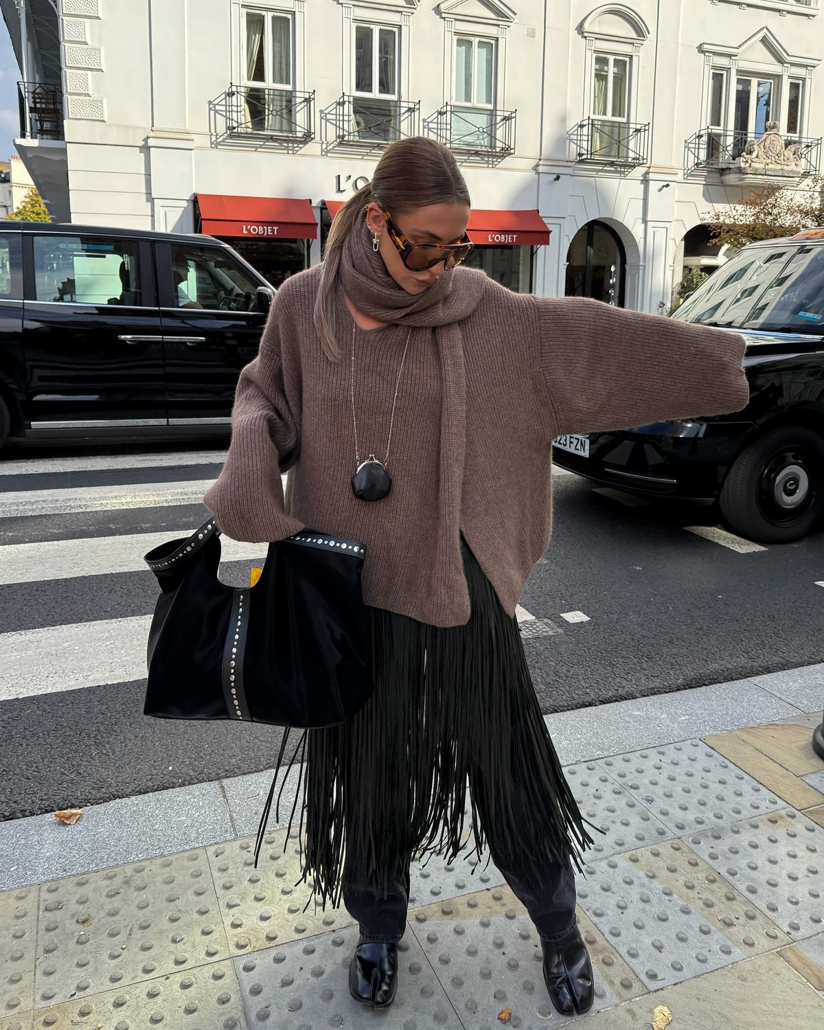 Їх краще поєднувати з лаконічним низом, щоб зберегти баланс. Незвичайний светр сам по собі стає центром образу і не потребує складних доповнень.