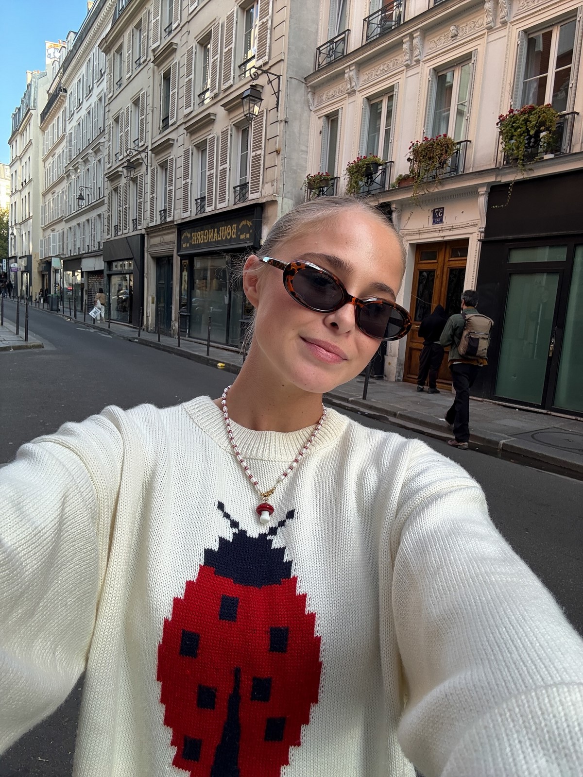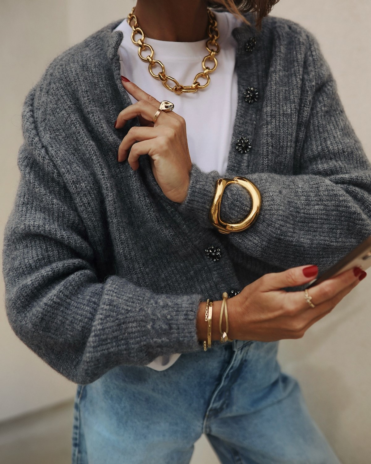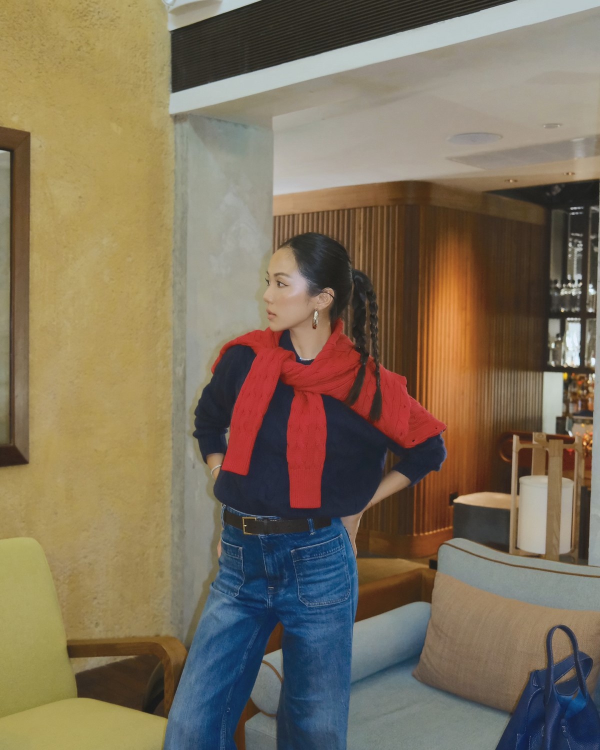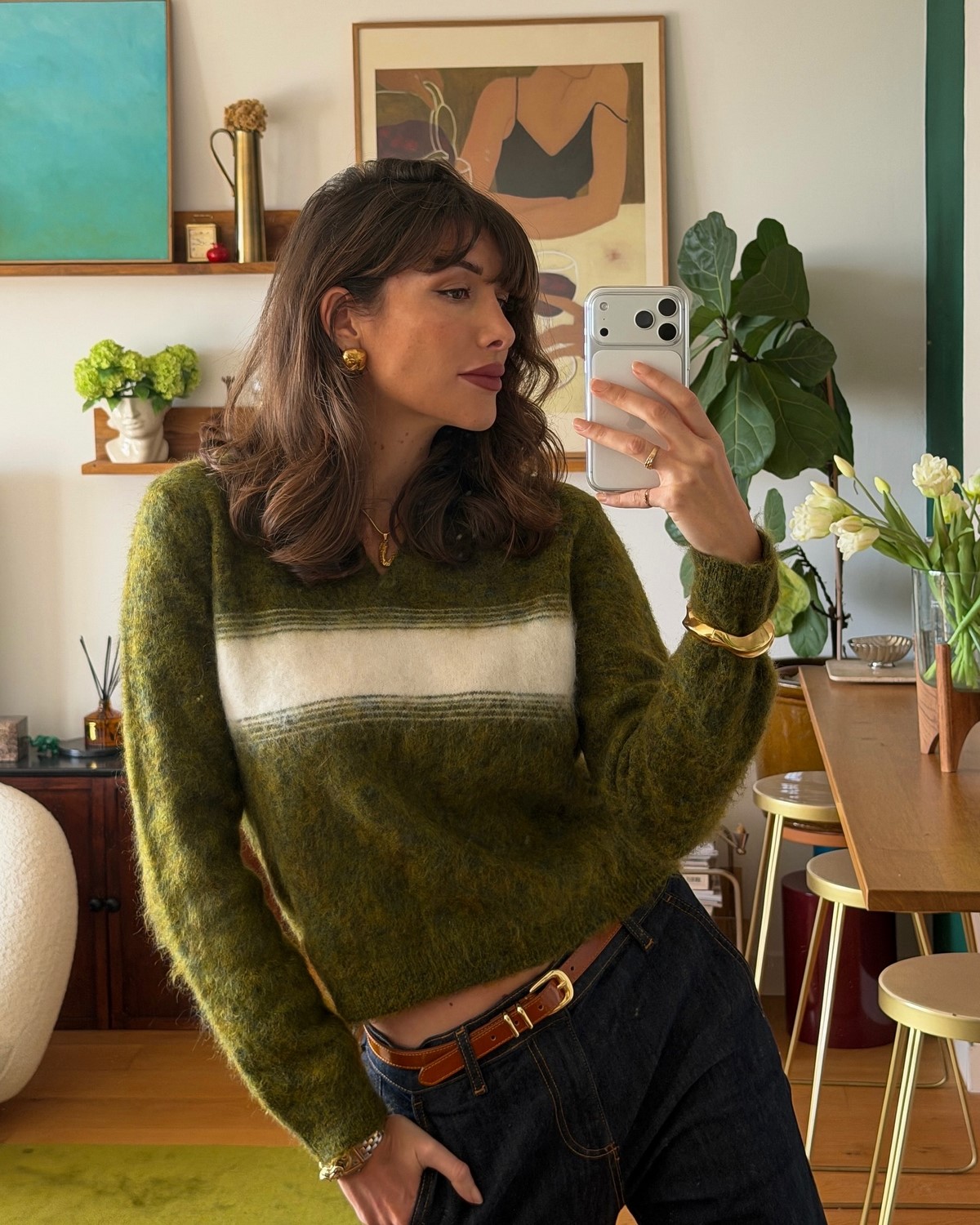 Його носять з нейтральними кольорами — сірим, чорним, молочним і синім. Такий светр додає енергії та візуальної впевненості, навіть якщо решта образу максимально проста.