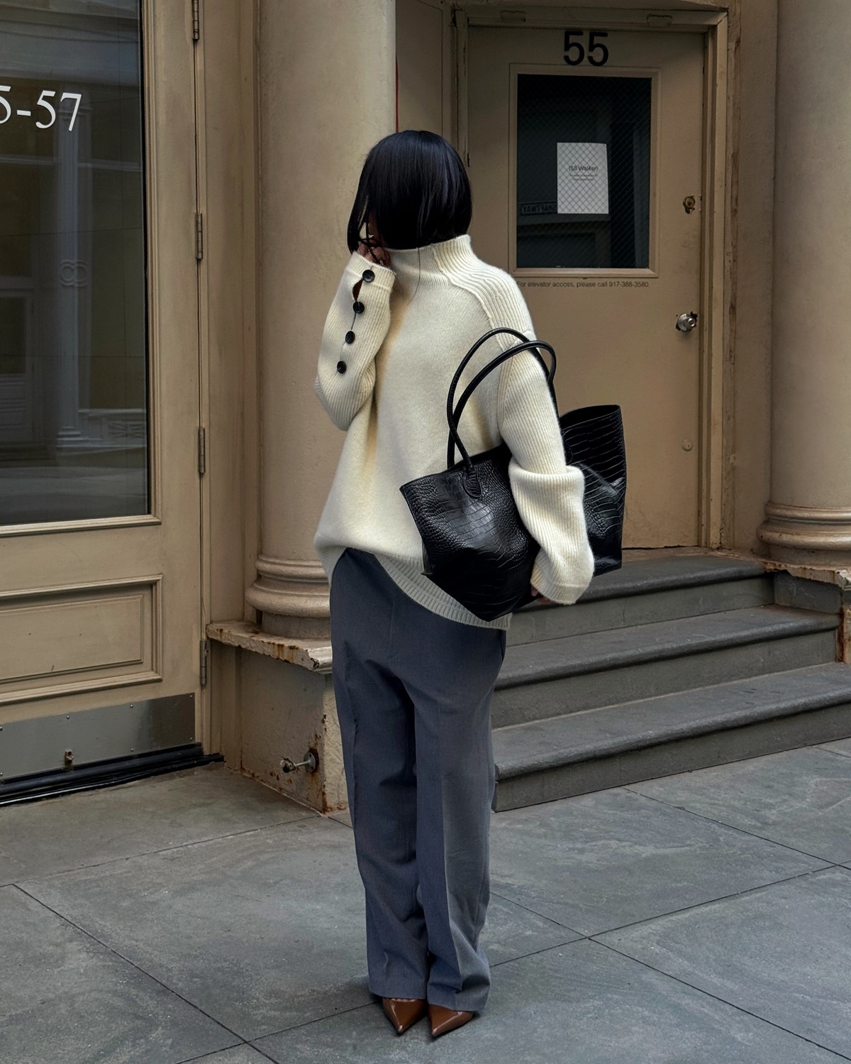 Він чудово пасує до монохромних образів і ідеально вписується в стиль smart casual. Светр з високим коміром можна носити як самостійний елемент або під жакет, пальто і навіть жилет.
