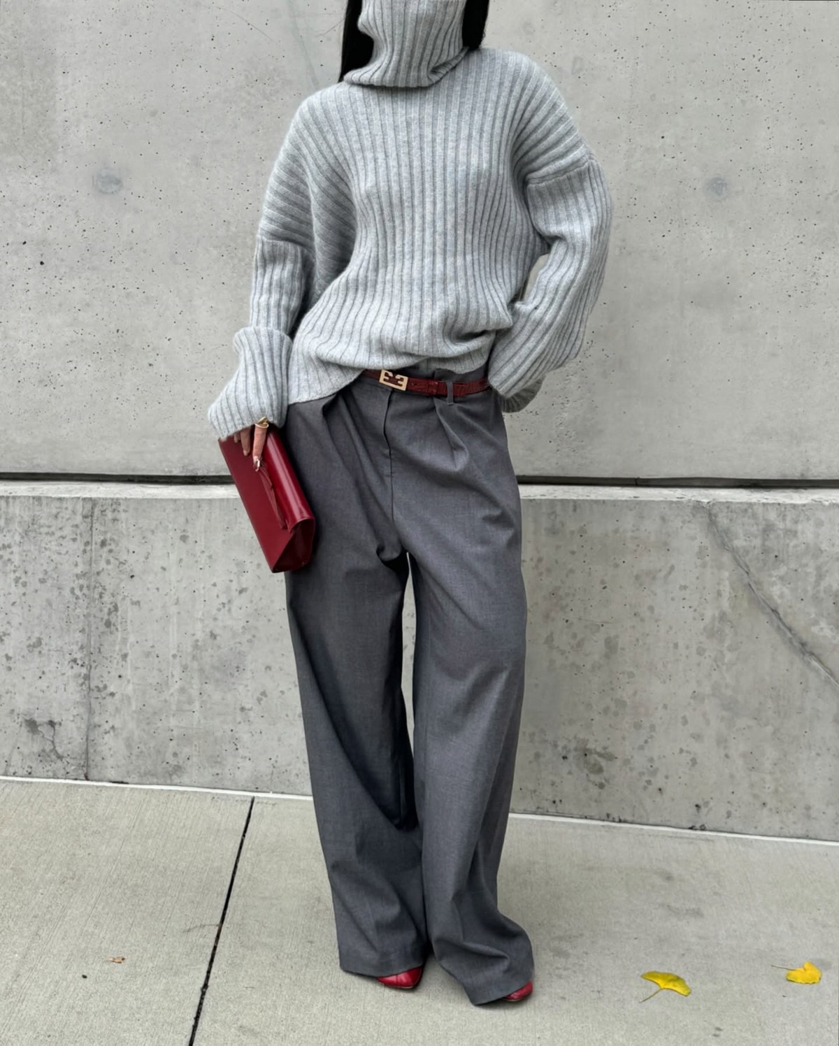 Червоний — один з найсильніших колірних трендів зими 2025–2026. У моді як насичені червоні відтінки, так і глибокий винний, журавлинний і рубіновий. Червоний светр стає акцентом образу і не вимагає складних стилістичних рішень.