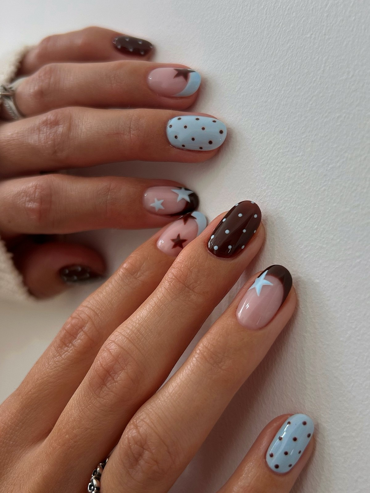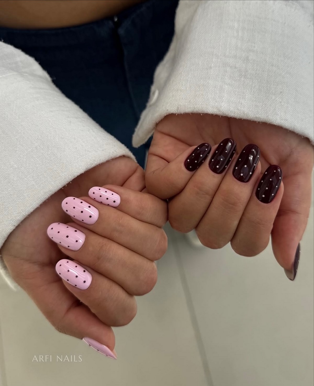 Варіанти модного зимового манікюру в стилі Polka Dots 2025