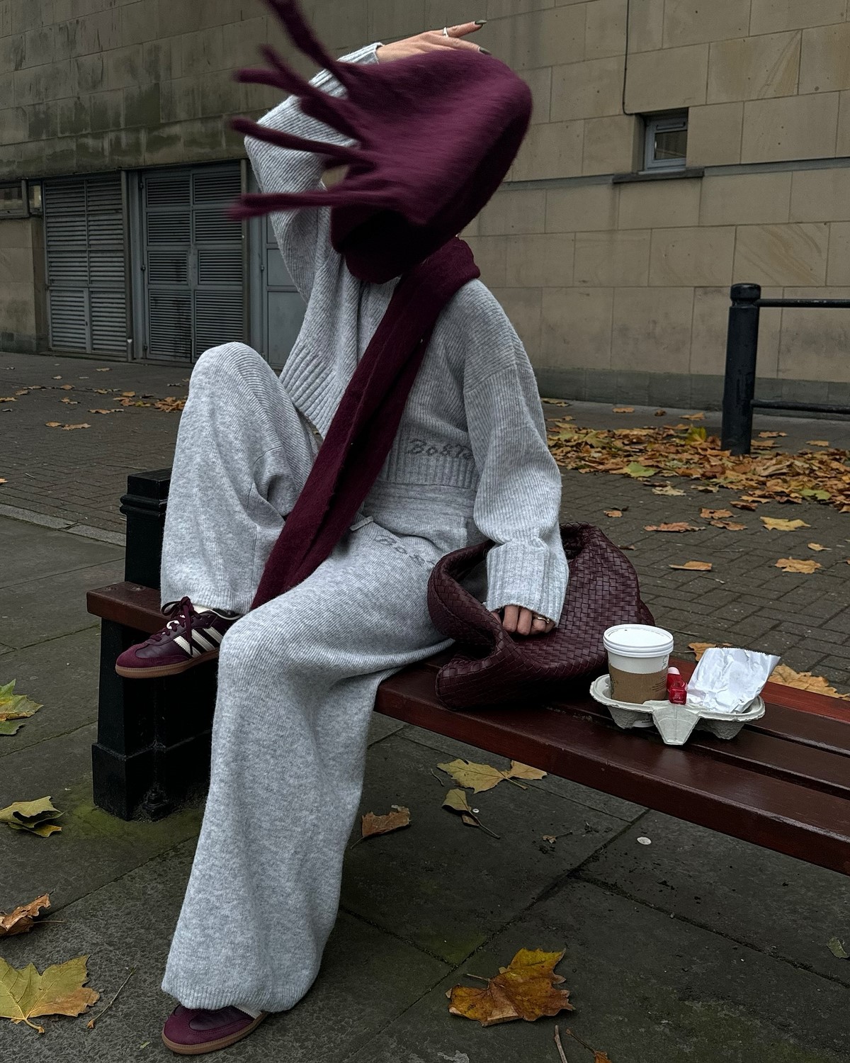 Трикотажний костюм став невід’ємною частиною сучасного гардеробу. У цьому сезоні популярні м’які костюми з кашеміру, вовни та віскози, які можна носити не тільки вдома, але і в місті. Дизайнери додають фактурні візерунки, об’ємні рукави і нейтральні відтінки — від бежевого до сіро-блакитного.
