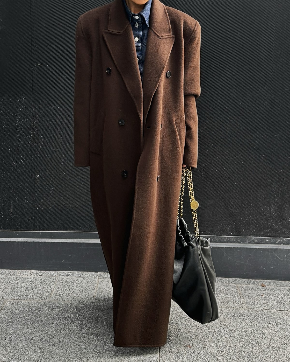 Максі-пальто — символ елегантної зими. Воно може бути прямим, двобортним або обгорнутим поясом, що підкреслює талію. У моді фактурна вовна, шкіра і букле. Особливо актуальні моделі в бежевих і сірих тонах — вони легко комбінуються з будь-якими образами.
