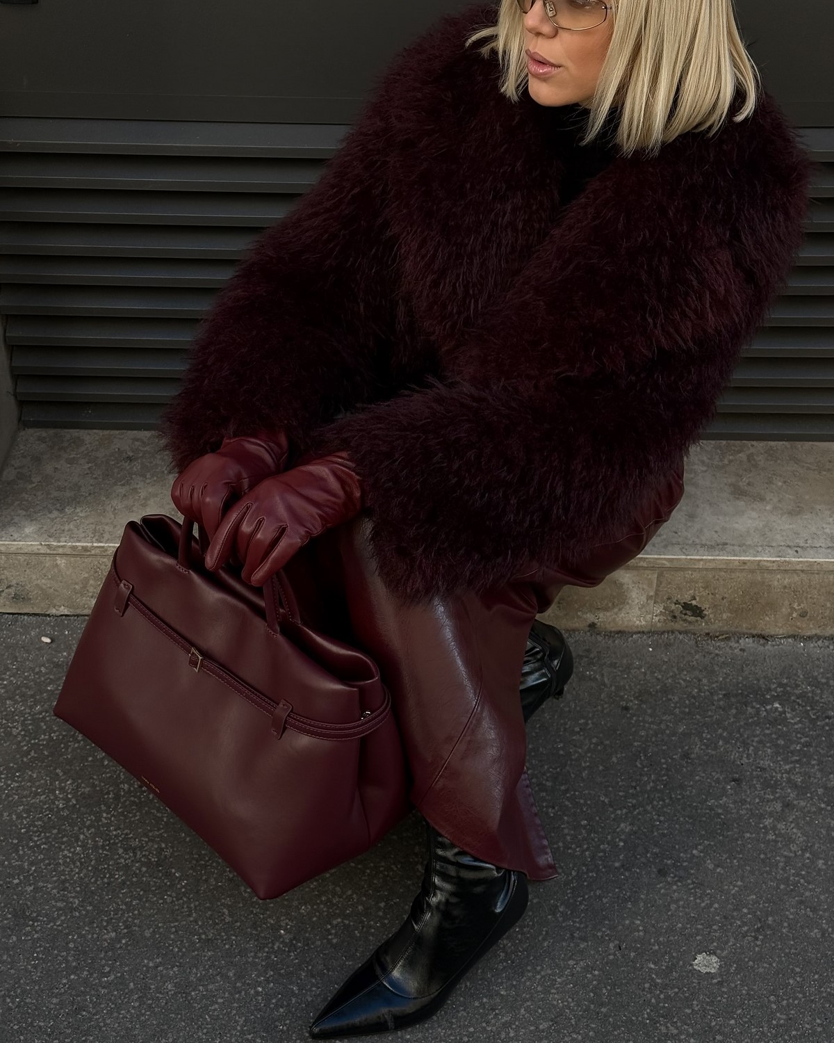 Великі сумки знову в моді. Місткі моделі із замші або м’якої шкіри стали не тільки практичним, але й стильним елементом образу. Наймодніші відтінки — бордо, сливовий, теракотовий і коричневий. Така сумка легко доповнить і повсякденний, і діловий стиль.