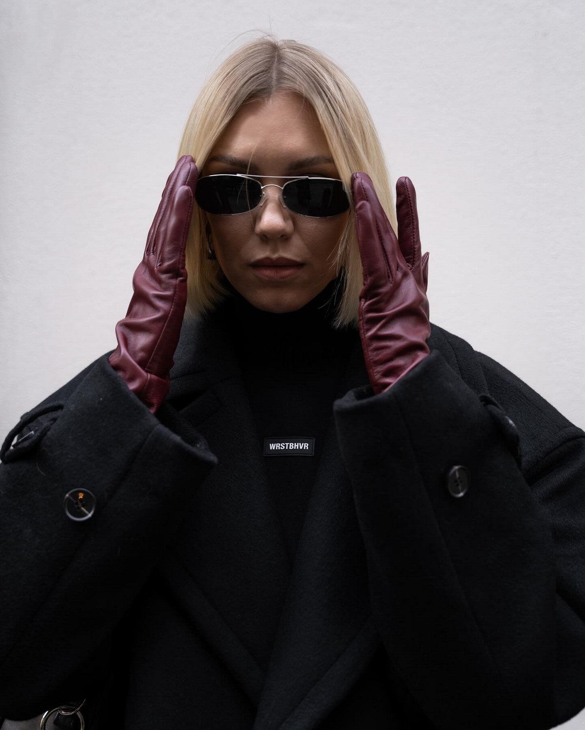 Класичні шкіряні або в’язані рукавички довжиною вище зап’ястя знову на піку. Дизайнери пропонують варіанти з хутряною обробкою, контрастною строчкою і в насичених тонах — від червоного до темно-зеленого. Вони ідеально поєднуються з пальто і дублянками.