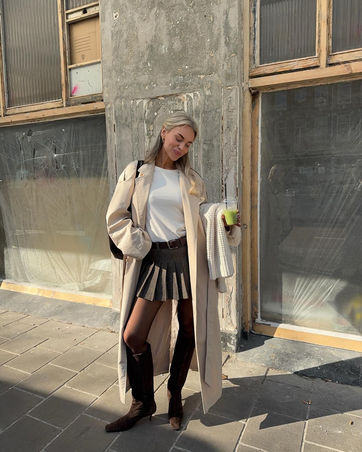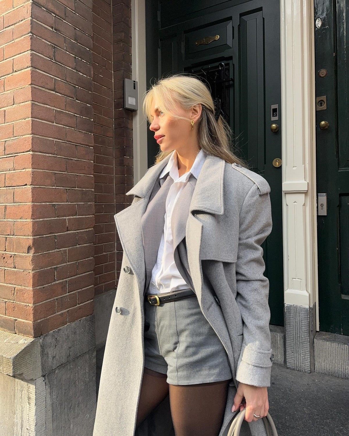 Силуети залишаються вільними, матеріали — теплими (вовна, замша, шкіра, твід, кашемір), а акценти — виразними: великі ґудзики, об’ємні коміри, довгі рукави і ремені на талії.